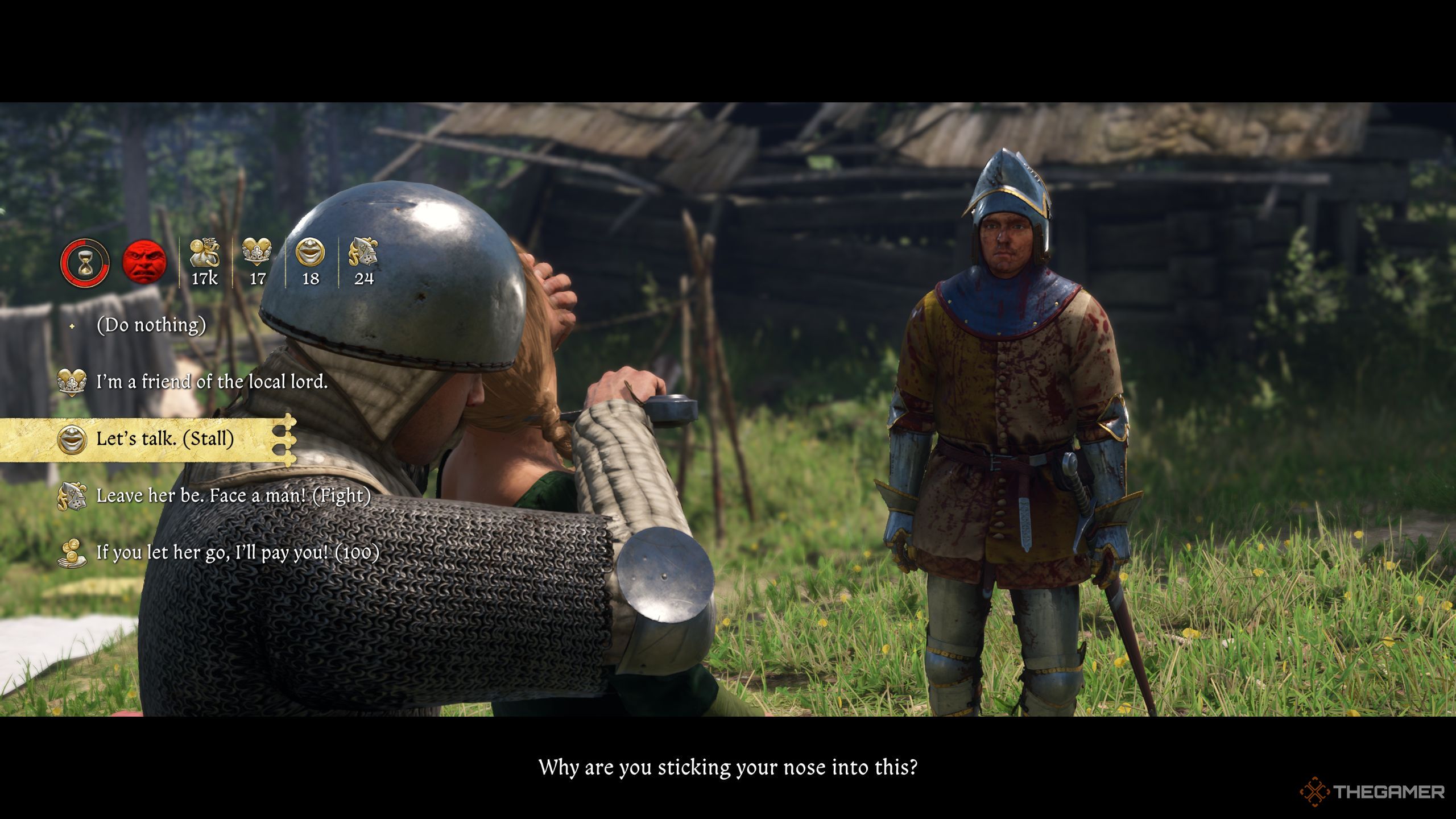 ミクシュを救った後、彼はあなたに彼の家族を救うように頼むでしょう、そのため、すぐに受け取るクエストマーカーに従います。目的地に到達すると、カットシーンが開始され、その後、「ネゴシエート」オプションを選択します。これはあなたに提供されます3つのスキルチェックがあります、しかし、それらのいずれにも十分なポイントがない場合は、最後のオプションを選択します彼に100グロッシェンを支払う。