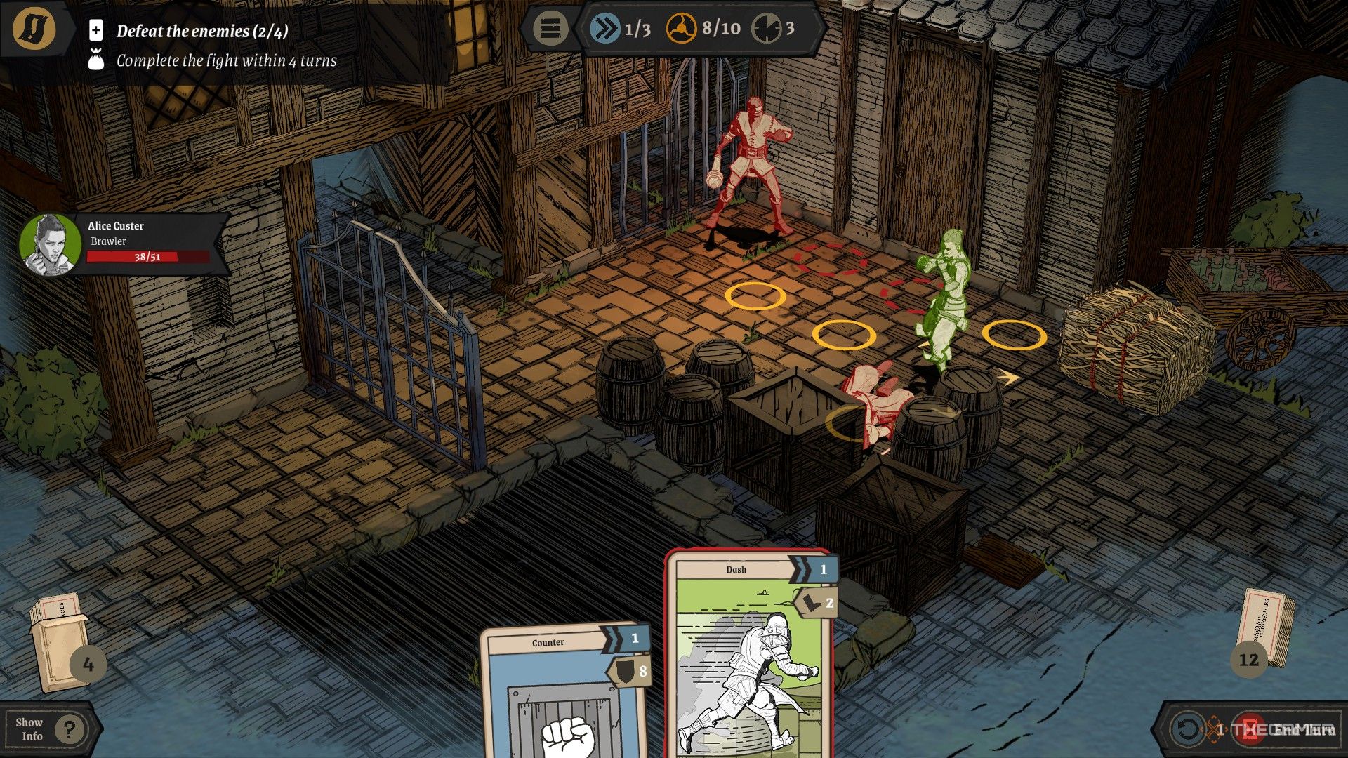 - あなたの最初のキャラクターは、12ダメージのために敵に当たります。