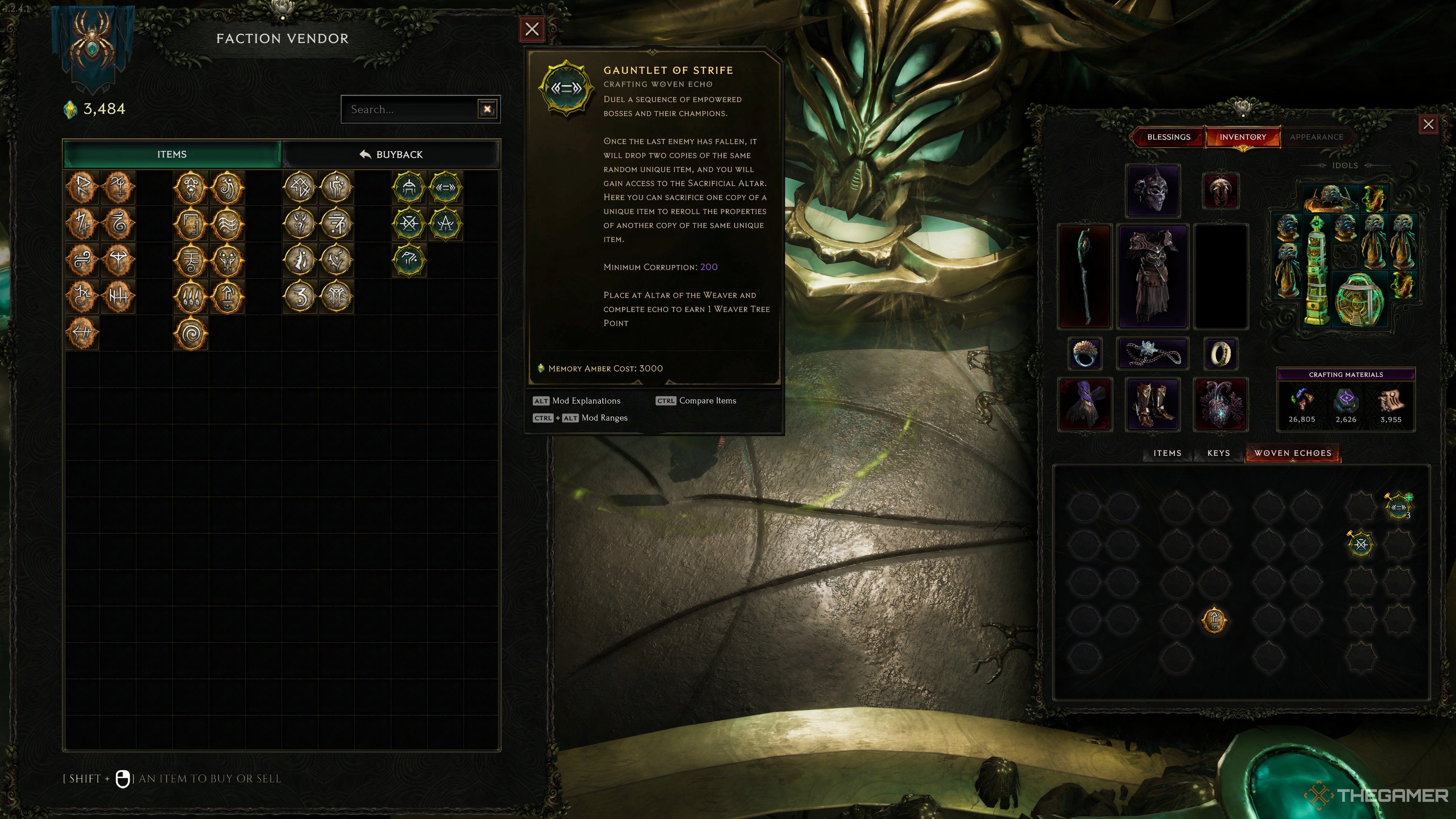 争いのガントレットを征服した後、あなたは犠牲の祭壇にアクセスできるでしょう、非常に強力なエンドゲームクラフトメカニック。犠牲の祭壇はあなたを許します重複したユニークの1つを犠牲にして織物を実行する他方の接辞値を再ロールする。すべての接辞にはロール範囲がランダム化されますが、伝説的な接辞は既存の層を維持します。