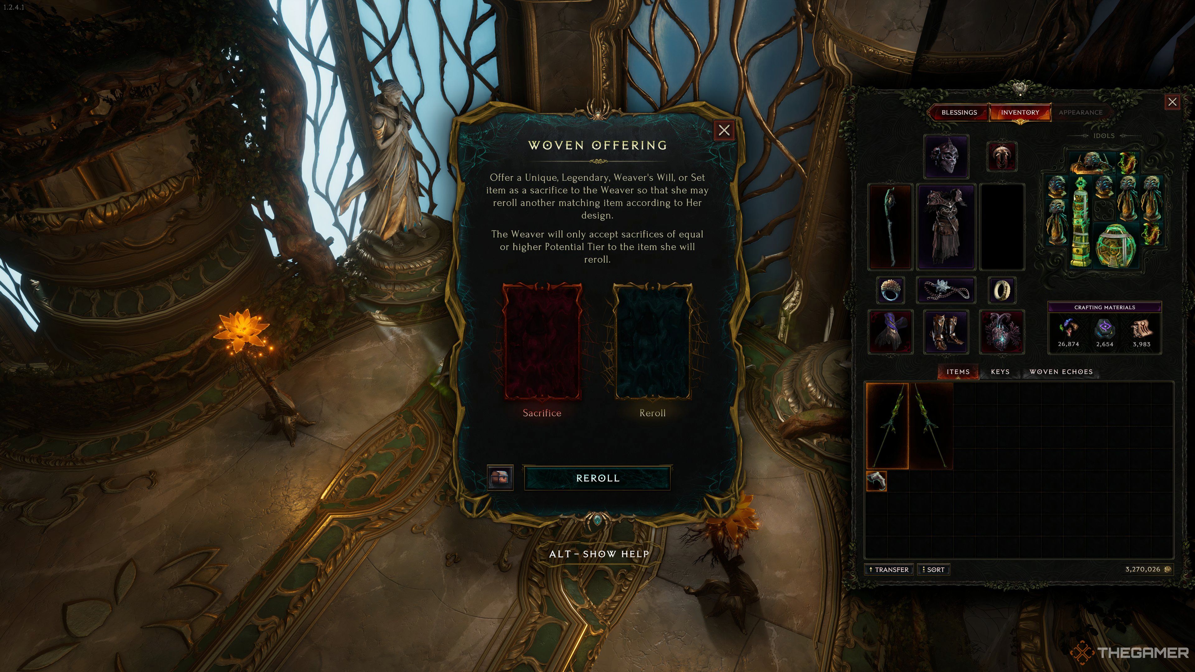 祭壇の使用は、特に貴重な伝説的な可能性を秘めたアイテムの最適化に最適です。ユニークで伝説的なウィーバーの意志、または設定されたアイテムの接辞を再ロールすることで、ビルドでさらにうまく機能させることができます。