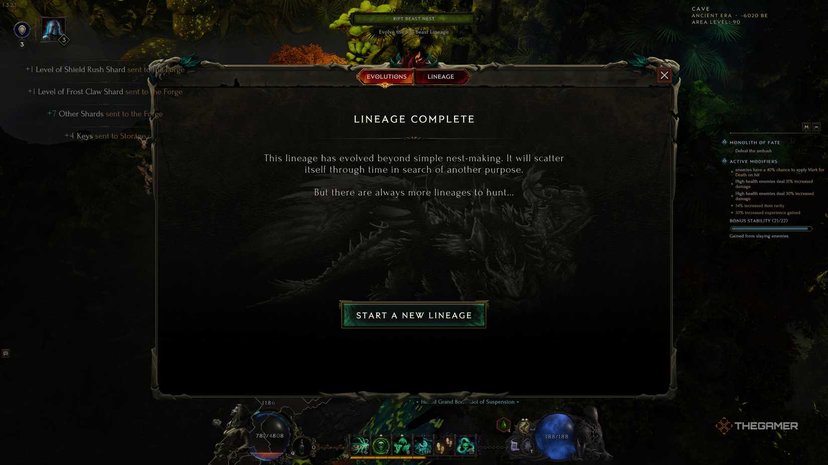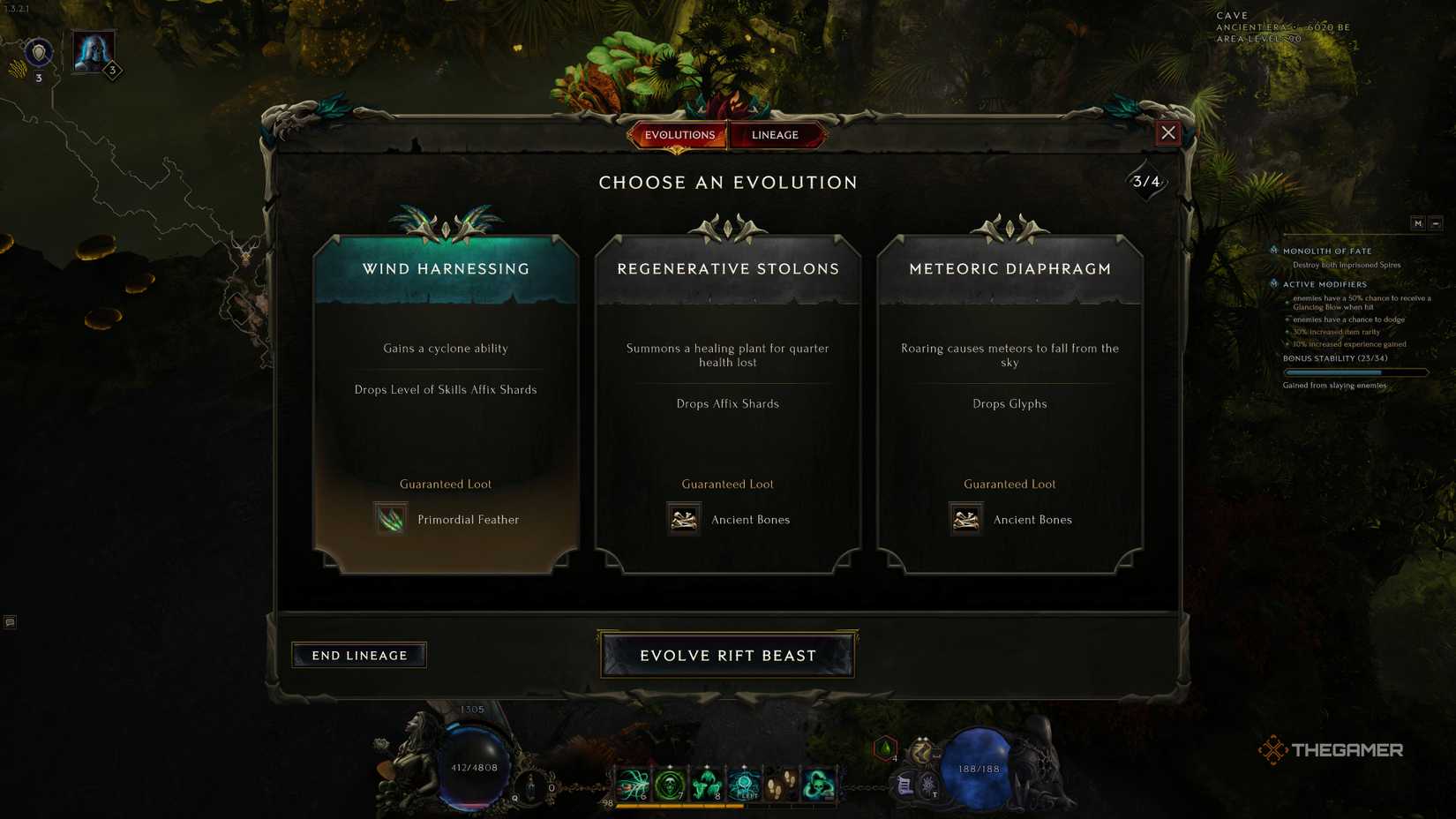 4つの進化の上限があるため、織られたエコーを完成させることで7つに拡張できます。パワー、ルートの目標、および生存性のバランスをとる必要があります。あなたが許可するRift Beast Lineagesからの報酬を構築、管理、償還することができます。