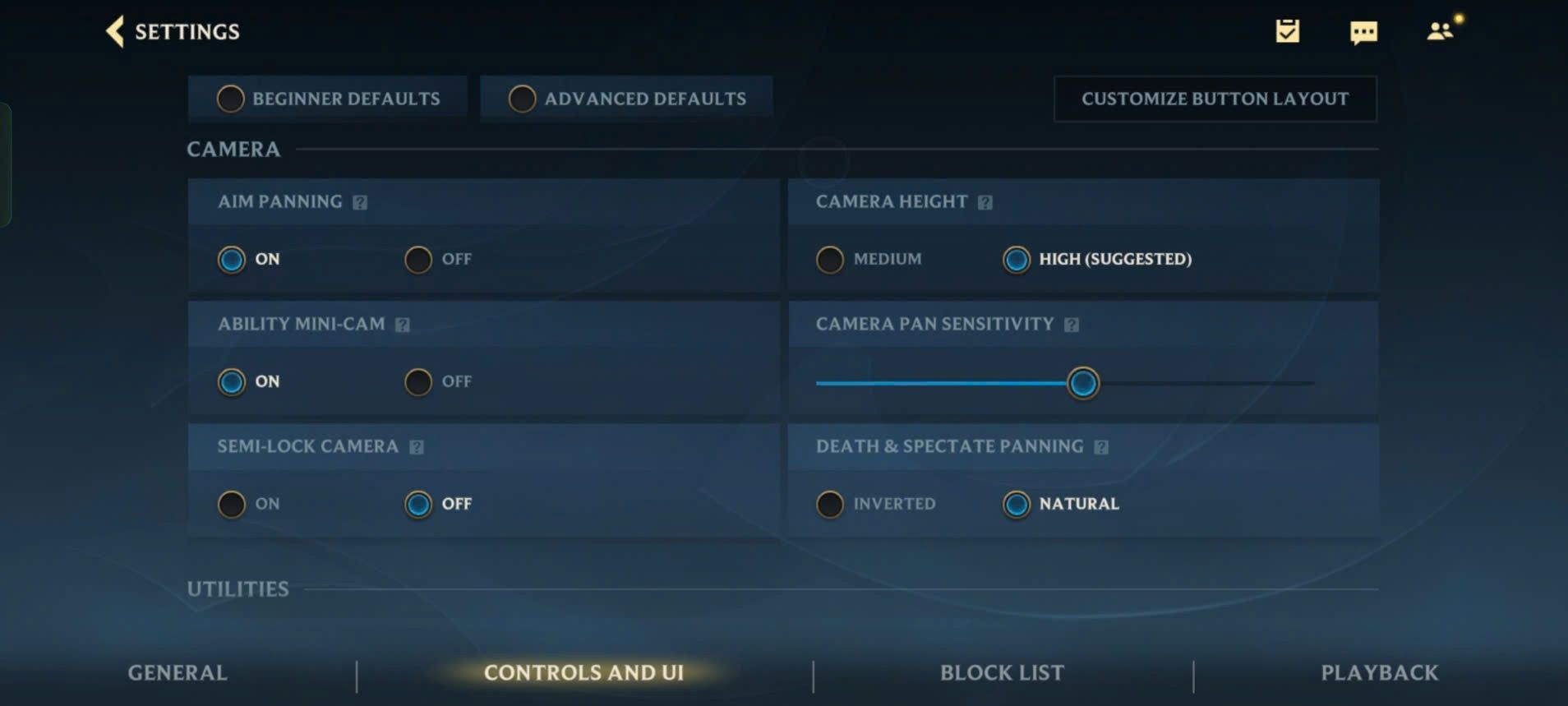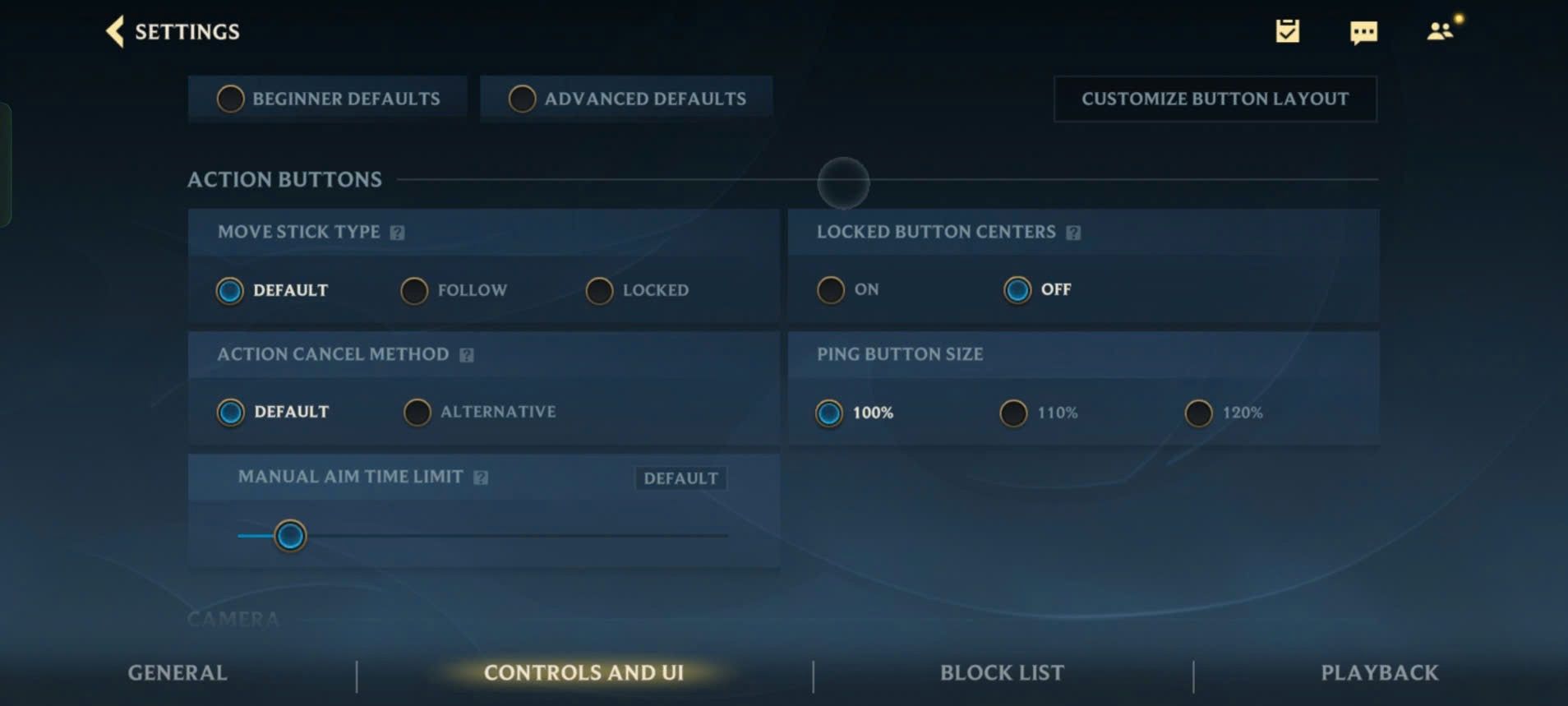 セミロックカメラ | オフ | この設定は使用が難しく、プロプレーヤーのみを対象としています。それはあなたのビジョンを拡大しますがカメラがチャンピオンをフォローするのを止めます、簡単にしますあなたのポジション、HP、およびマナを追跡してください。攻撃されている場合、セミロック状態をキャンセルするには時間がかかりすぎて、簡単なターゲットに変えます。 カメラロックは画面の上部にあるため、親指がチームの戦いに十分な速さでないため、人差し指で調整する必要があります。プラス、セミロックボタンは、究極のボタンの近くにあります、偶発的なミスプレイのリスクを高めます。 |