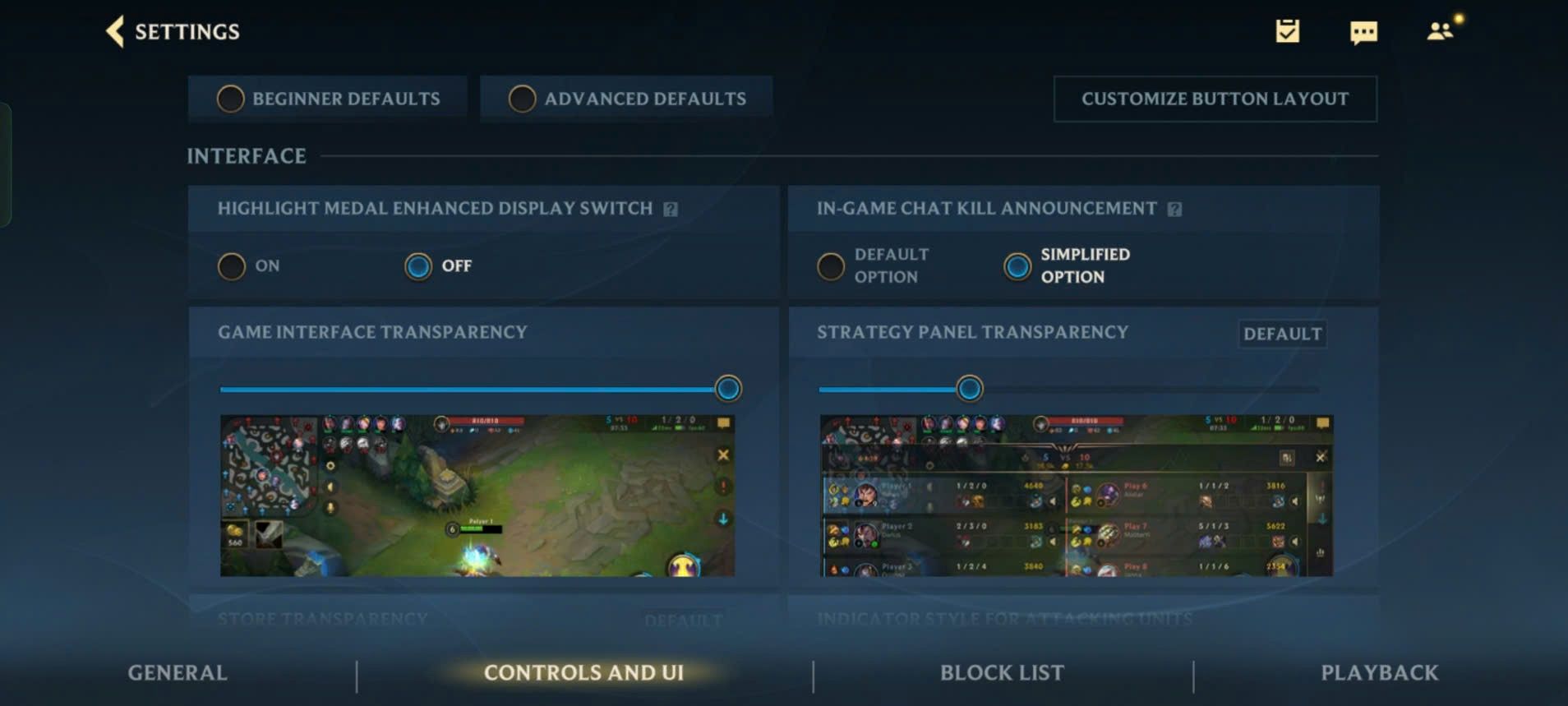 戦略パネルの透明性 | あなたの好みにそれを下げます | このパネルが表示されます必須ゲームデータ、チャンピオンの詳細、サモナーの呪文、ワード、ルーン、アイテム、金、統計、および必要に応じてプレイヤーをミュートするオプションを含む。 透明性を低下させますしたがって、このパネルが開いている間、あなたの周りで何が起こっているのかをまだ見ることができます。これは、ランク付けされた試合で特に重要ですパネルがあなたのビューをブロックして情報をチェックしながら攻撃することができます。 |