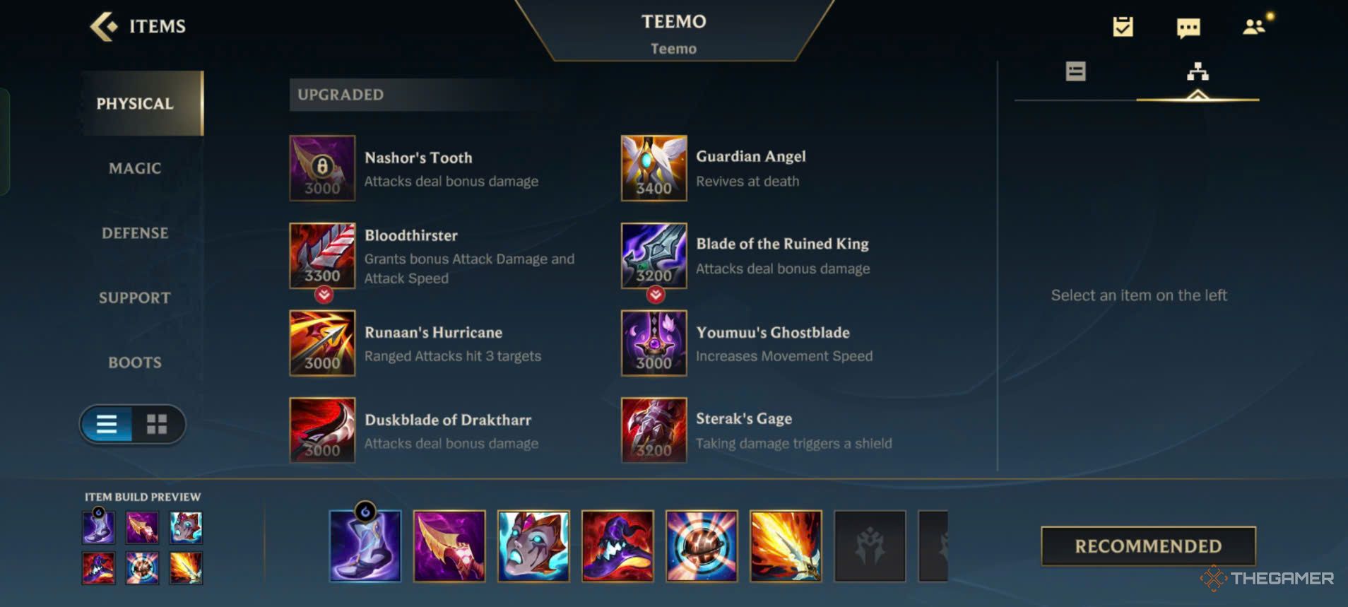 Teemoは、彼が生き残りたい場合、損害を与えながら距離を維持する必要があります。彼にとって最高のビルドには含まれていますモビリティを向上させ、能力を削減し、彼の能力ダメージを増幅するアイテム。 Teemoは自動攻撃にも依存しているため、そうする必要があります彼のビルドに攻撃速度アイテムを含めます同じように。