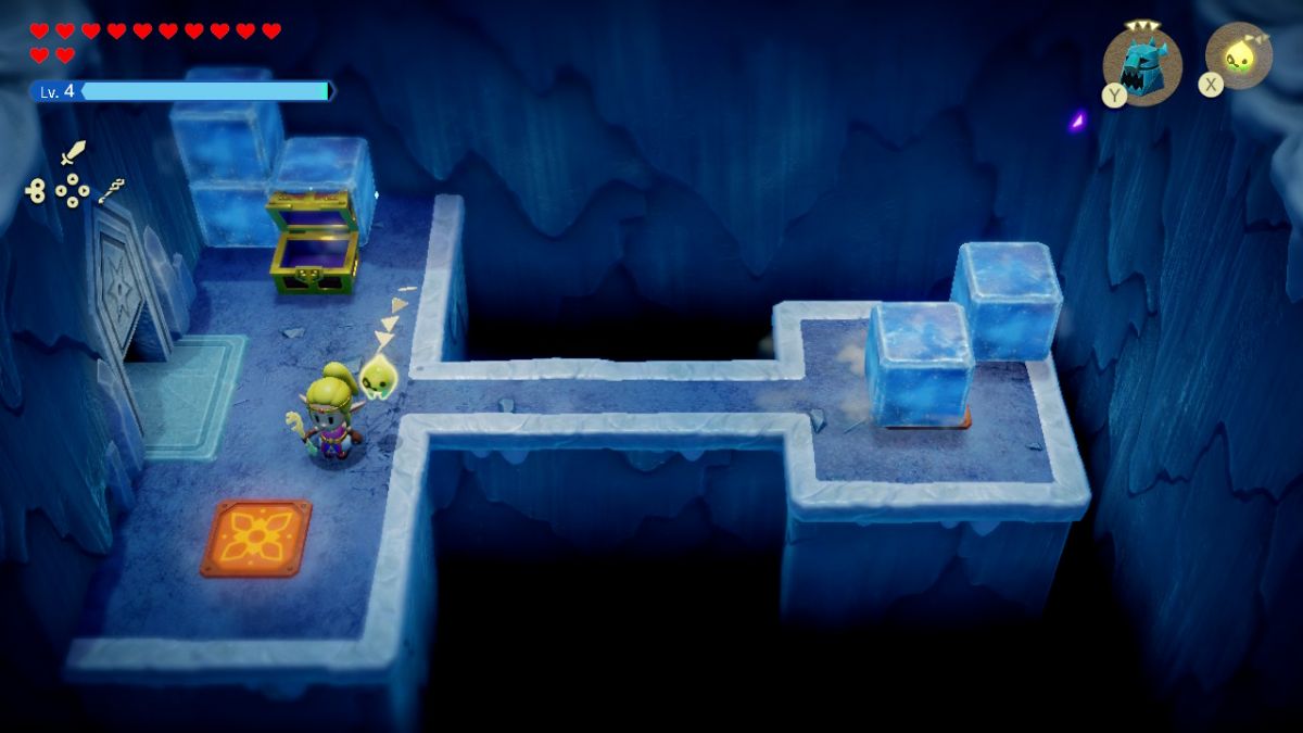 東の入り口に移動し、アイスブロックを右のボタンに向かって押します。あなたが持っているでしょう下部ボタンを同時に踏むアイスブロックが右のボタンに当たると、小さなキーを含む宝箱が生成されます。