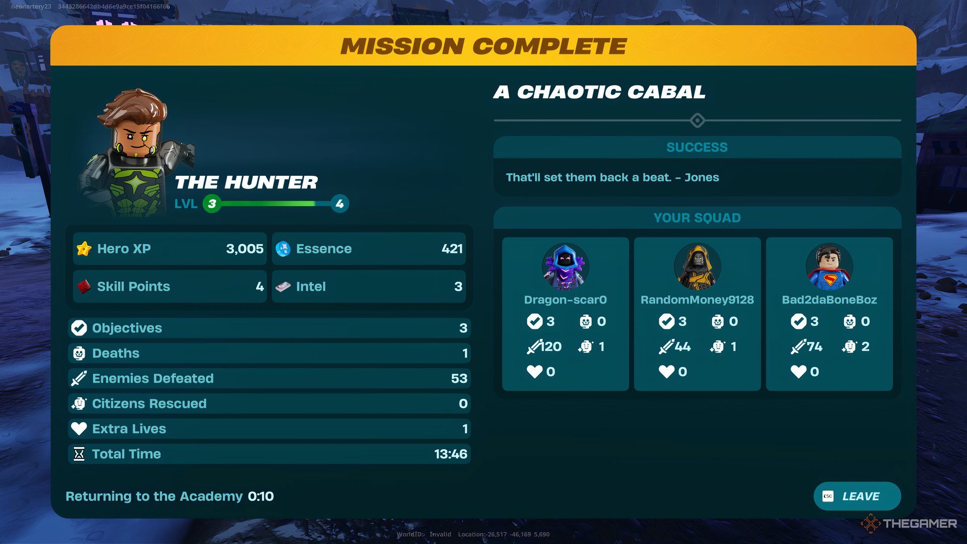 完了すると、少なくとも3枚のIntelカードを獲得する必要があります。ミッションが終了したときにどれだけ得たかを簡単に確認できます。画面が表示されますあなたがして稼いだすべて、Intelを含む。