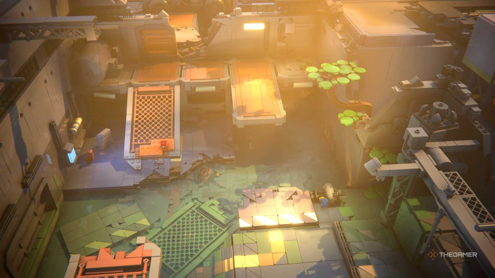 オープニングシーケンスを介してプレイしてつま先を世界に浸し始めた後、世界中に表示される金属パネルに遭遇し、橋とパッドの発射の両方を機能させるときに、単一のメカニックに基づいた最初のマルチステップパズルに出くわします。