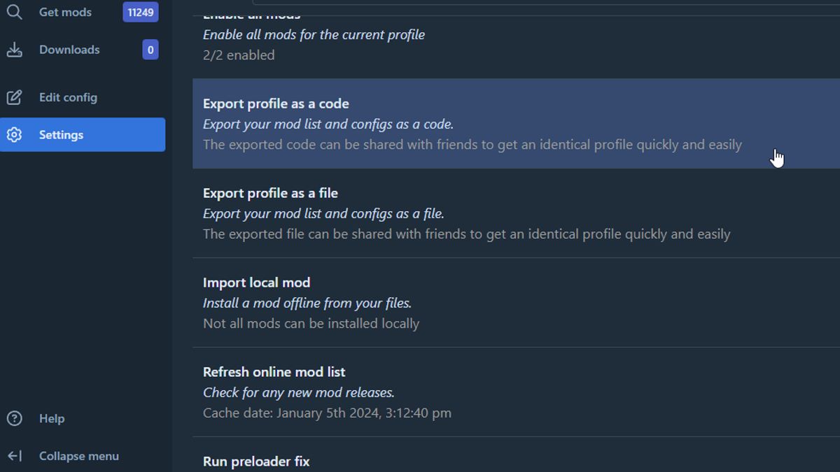 改造は致命的な会社コミュニティの間で非常に一般的であるため、おそらくThunderstore Mod Managerを使用して、プレイしている人に基づいて動的にMODを有効にして無効にしたいと思うでしょう。 Modロードアウトを友達と共有することもできます。これについては、以下で説明します。