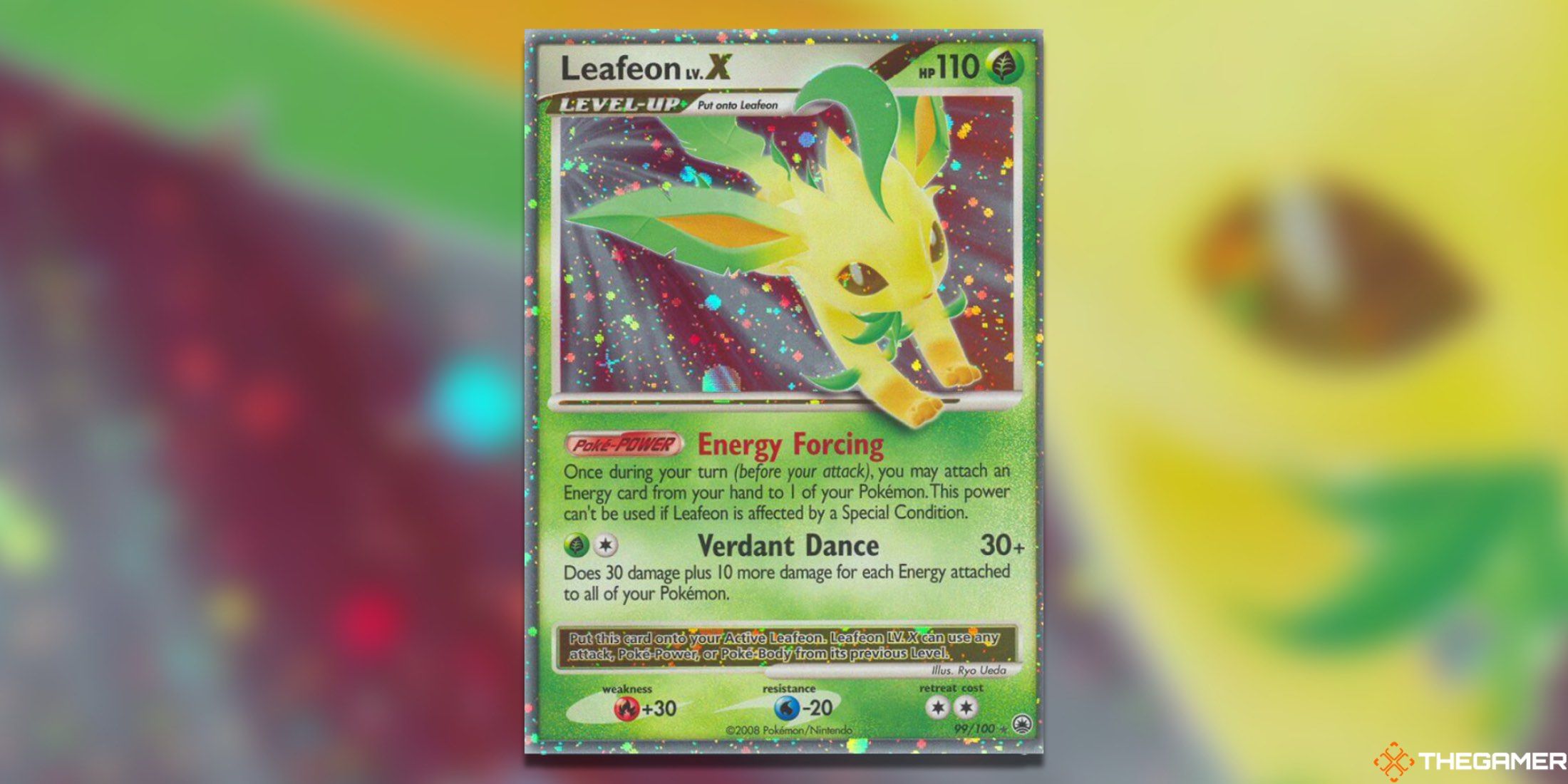 Leafeonの最も貴重なカードの1つとして、このLV。 Xには多くのことがありますが、このカードの緑、赤、銀色のシェーディングの豪華な協奏曲は、誇大広告を確実に獲得します。最も人気のあるEeveelutionとはほど遠いものの、Leafeonのカードの名簿は総価値が増し続けており、このポケモンを新たな高みに押し上げます。