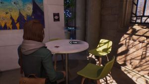 天文台でモーセとの相互作用の後、マックスは美術の建物に行き着きます。 「生きている」タイムラインに留まり、カフェに向かって進みます。