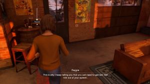 マックスは最終的に「リビング」タイムラインのスナップタートルバーに行き着きます。誰かと話をする前に、レジーとダイヤモンドが座っている場所に向かい、通り過ぎてください。