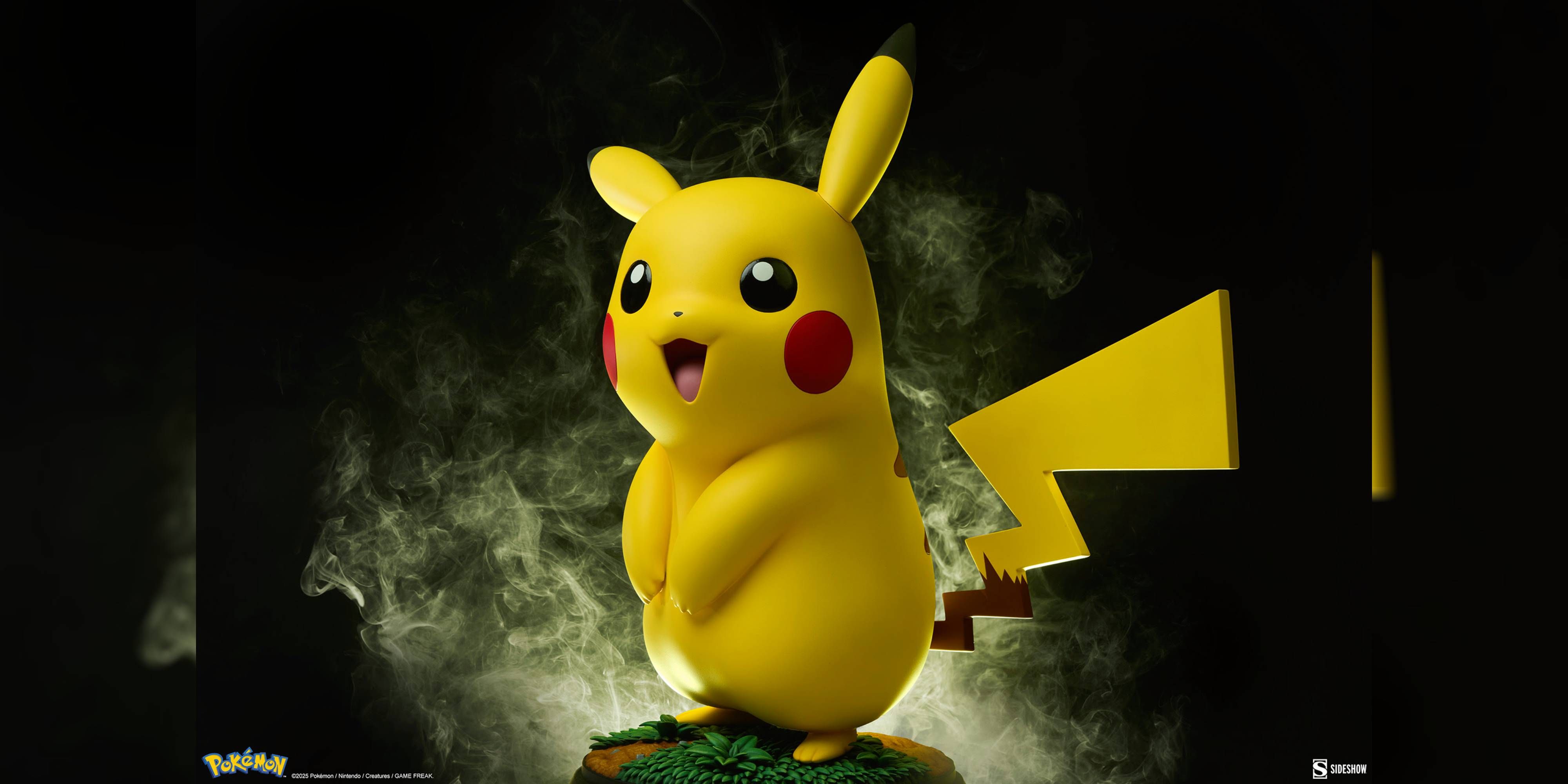 サイドショーのピカチュウ像は、ピカチュウがポケモンアニメとそれに付随するゲームに登場するのと同じサイズです。高さ18.5インチ、幅17.6インチ、ピカチュウの像は背が高いのとほぼ同じ幅がありますが、ほとんどがポケモンの象徴的な尾にかかっています。