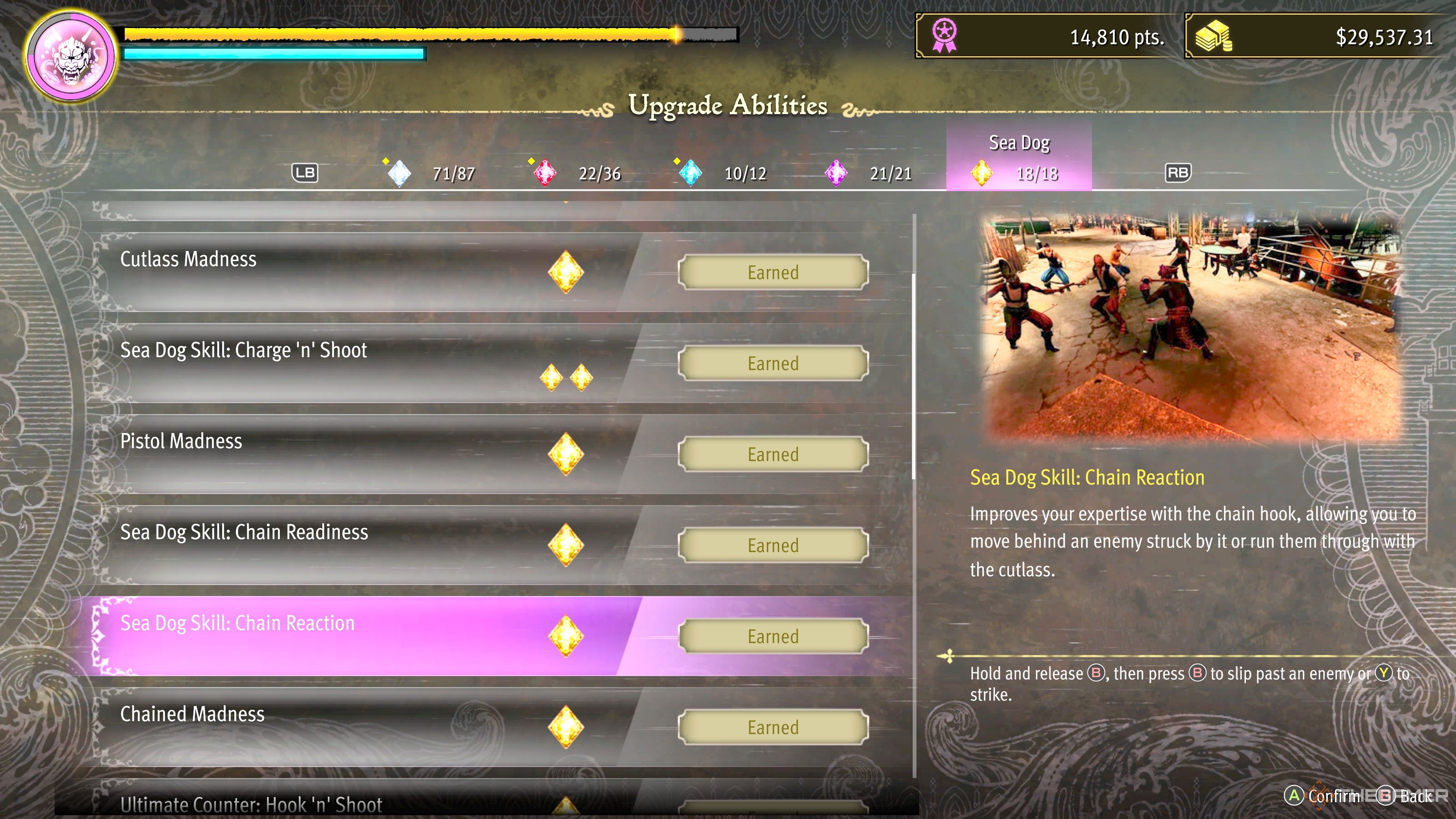 | 動き | チェーンフックを使用してください敵の後ろに移動するか、カトラスで敵を通り抜けます。 |