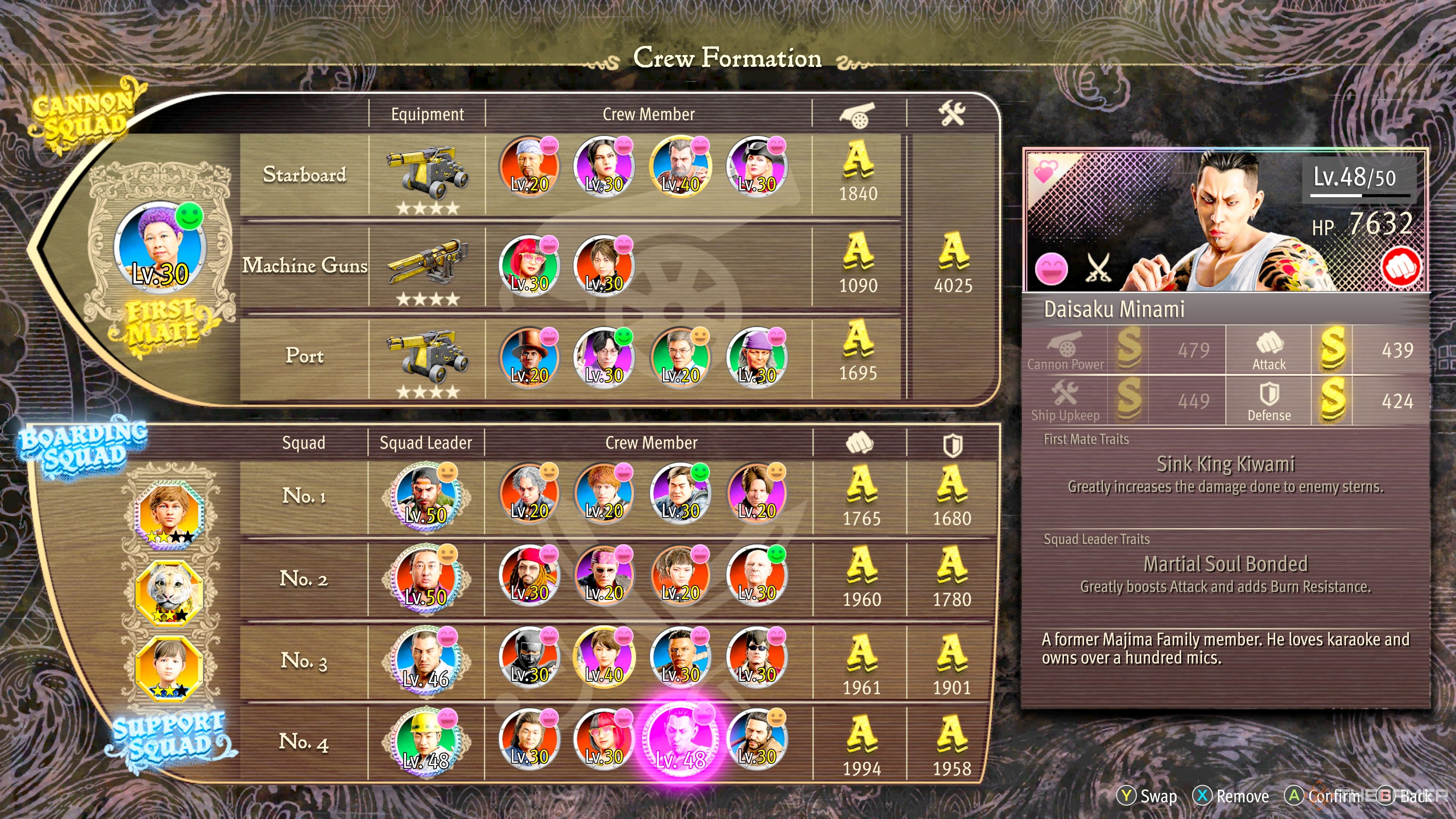 あなたの搭乗squadグループのための完璧な分隊のリーダーを見つけるドラゴンのように:ハワイの海賊ヤクザあなたは、大砲と搭乗の間の乗組員のスキルのバランスをとるといううらやましい仕事を与えられているので、あなたは背の高い仕事です。一部の乗組員はあなたの搭乗隊に適していますが、最高のチームリーダーの特性を持つ人だけがあなたの4つのグループの1つを率いることができます。