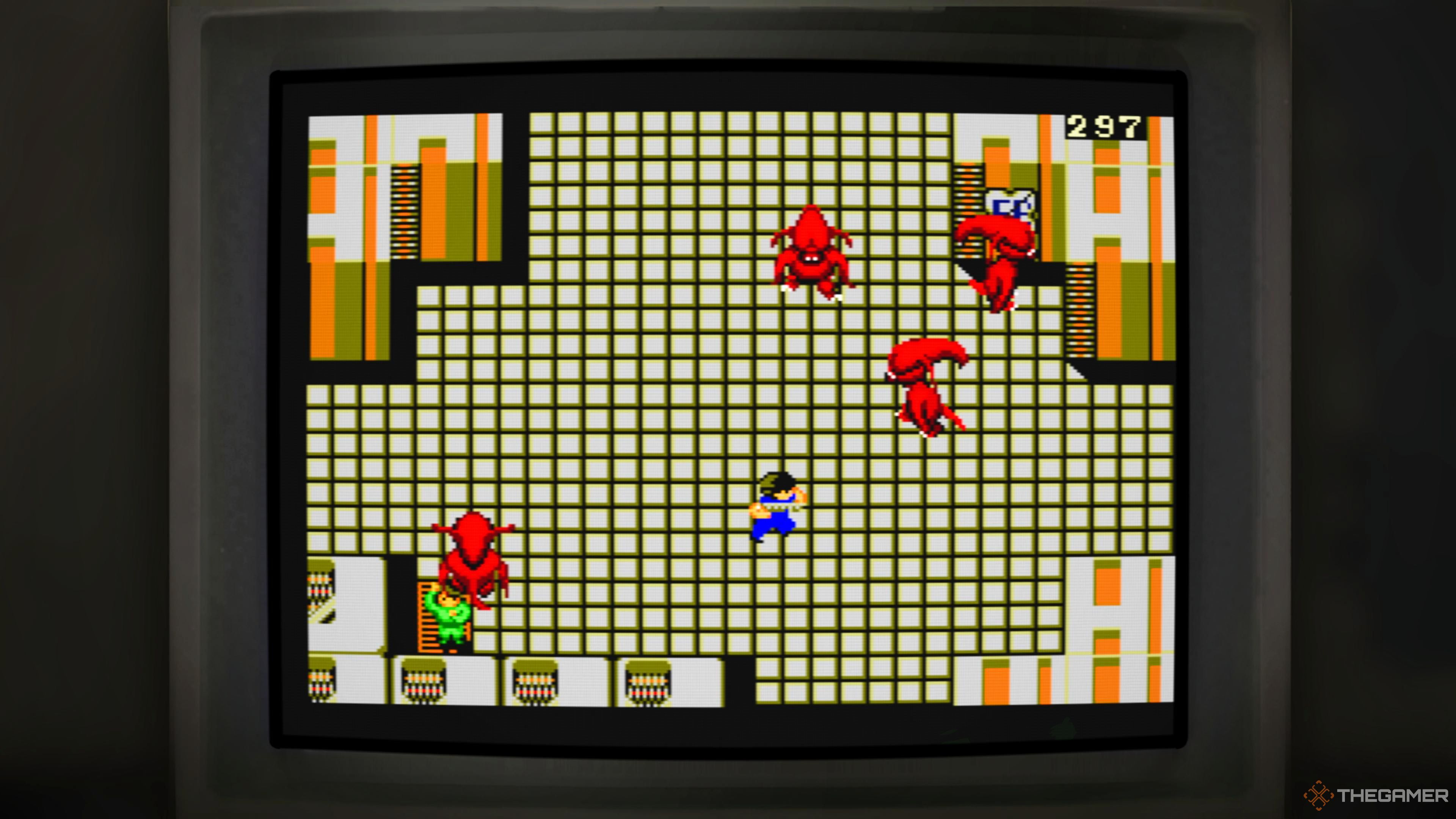 ゲームは、サイドスクロールゲームプレイを備えています。射手として、火炎放射器などのさまざまな武器タイプが含まれています。さまざまな敵もいます。たとえば、赤いエイリアンは青いエイリアンよりも弱く、火を回避しなければならない静止した敵がいます。レベルを完了するには、周りに散らばっている他の人間を救助し、エイリアンから救う必要があります。