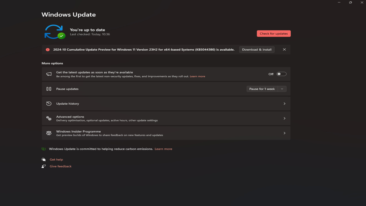- ロードされたばかりの[設定]タブで、すべての更新を実行していない場合はお知らせします。