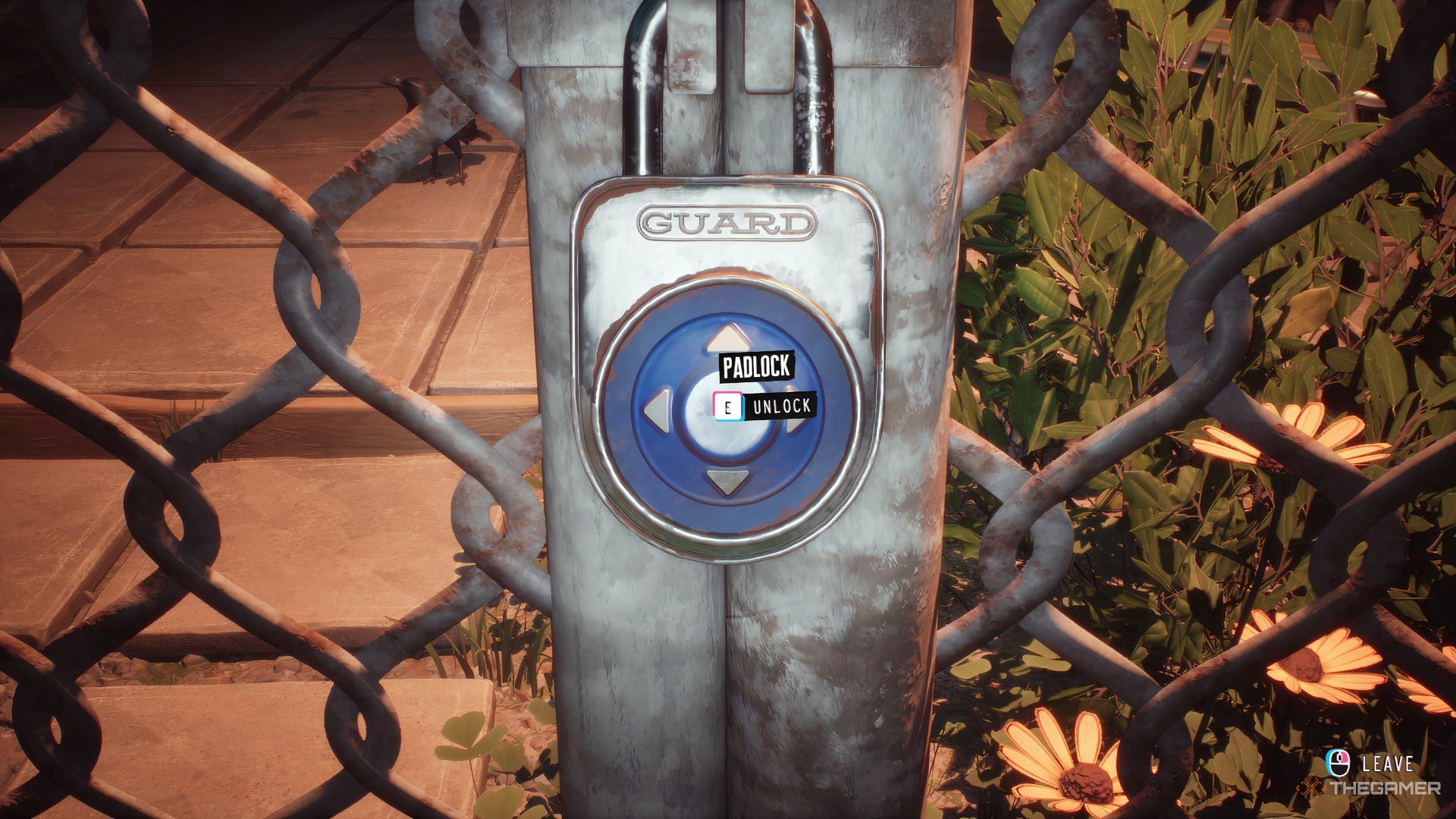 南京錠を開くための3つのオプションがあります。組み合わせを見つけたり、ディランに電話するか、あなたの道を壊してください。それらのそれぞれをトリガーするには、駐車場の周りの特定のオブジェクトと対話する必要があります。