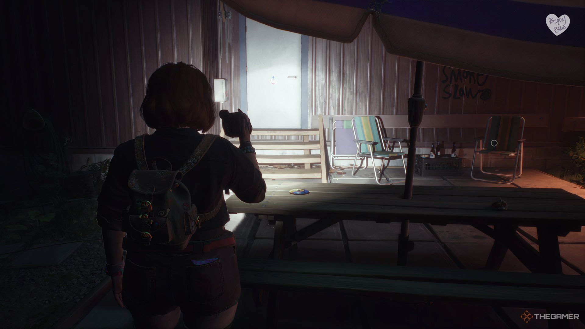今、あなたはブルーム&レイジのステッカーを配置するだけです。配置できますそのうちの2人はゲートの前、テーブルの上と白いドアの上にあります(落書きの隣)。