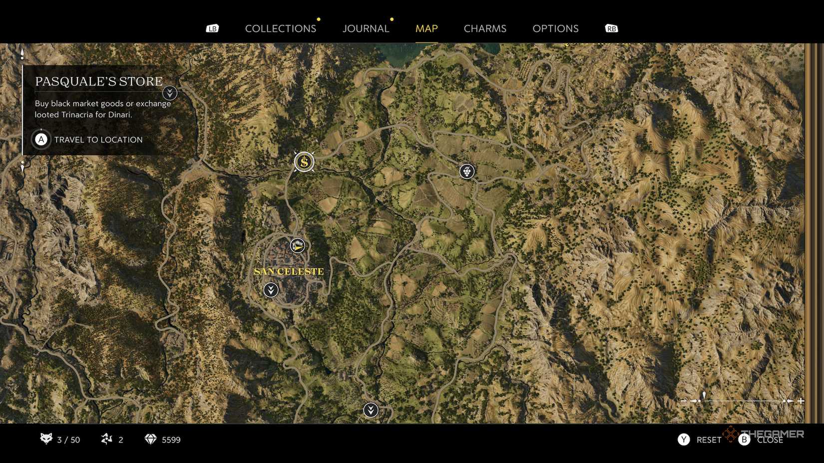 この夢を生きるには、そうする必要がありますPasqualeの店に旅行します、ゲームで目立つように機能する場所です。あなたはその場所を見つけることができますサンセレステの北とヴィラトリシのすぐ西。