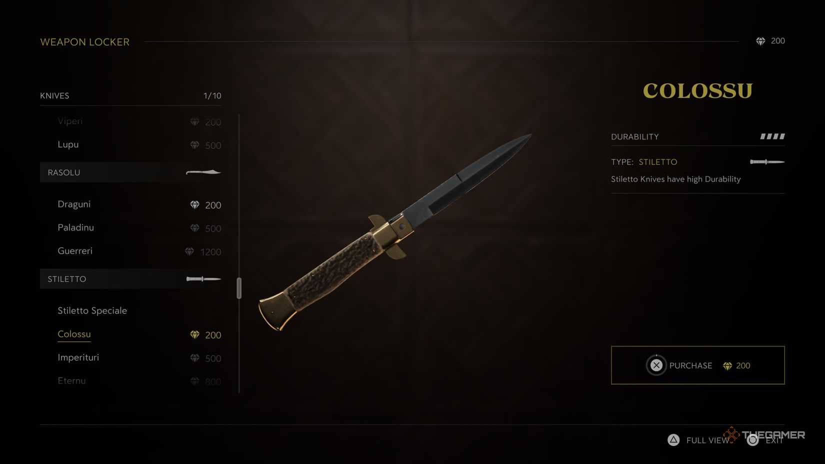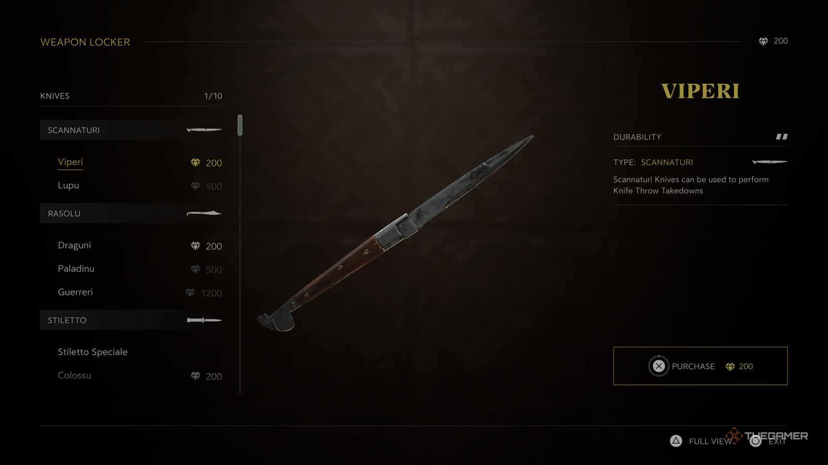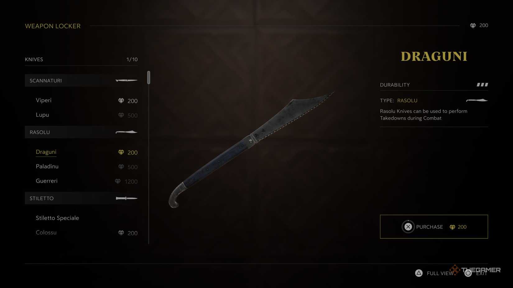 すべてのナイフはそうです取得または 武器ロッカーから購入ディナリと引き換えに、DLCとして購入したものを除きます。