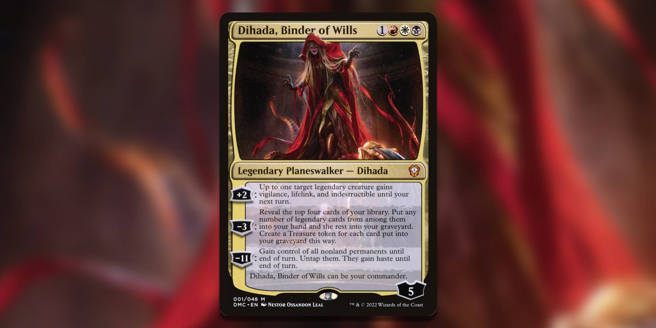 やや珍しいプレインズウォーカー司令官、ディハダ、バインダーオブウィルズは、すべての伝説的な生き物を強化する能力を持っています。