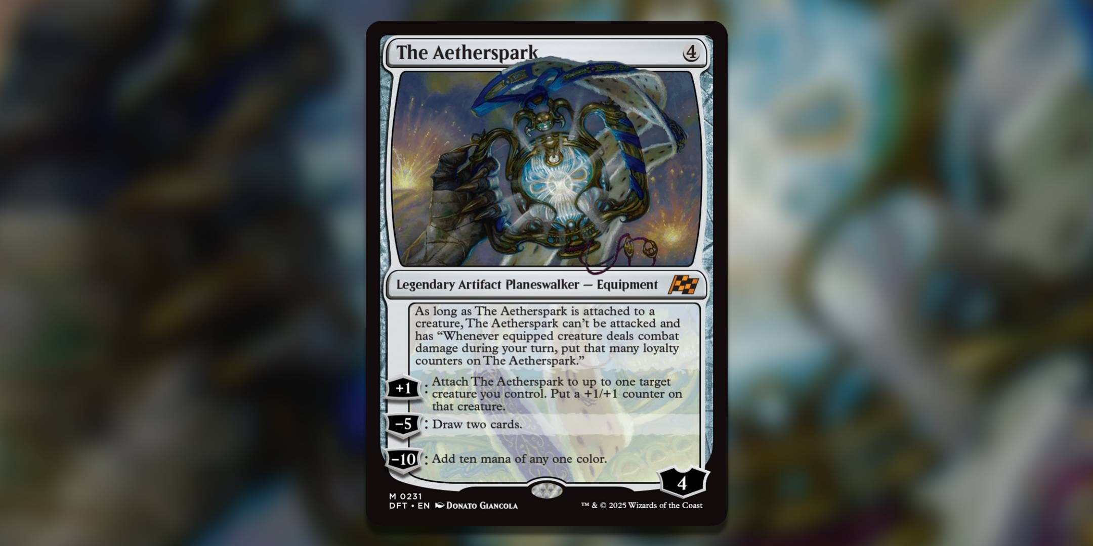 魔法で殺すのが最も難しいプレインズウォーカーの一人であるエーサーパークは、あなたの伝統的なプランズウォーカーのように機能しません。何よりもまず、機能的な機器であるため、Aethersparkをクリーチャーに装備できます。添付されると、呪文や能力を介して損傷を受ける可能性がありますが、戦闘の損傷の免疫があります。