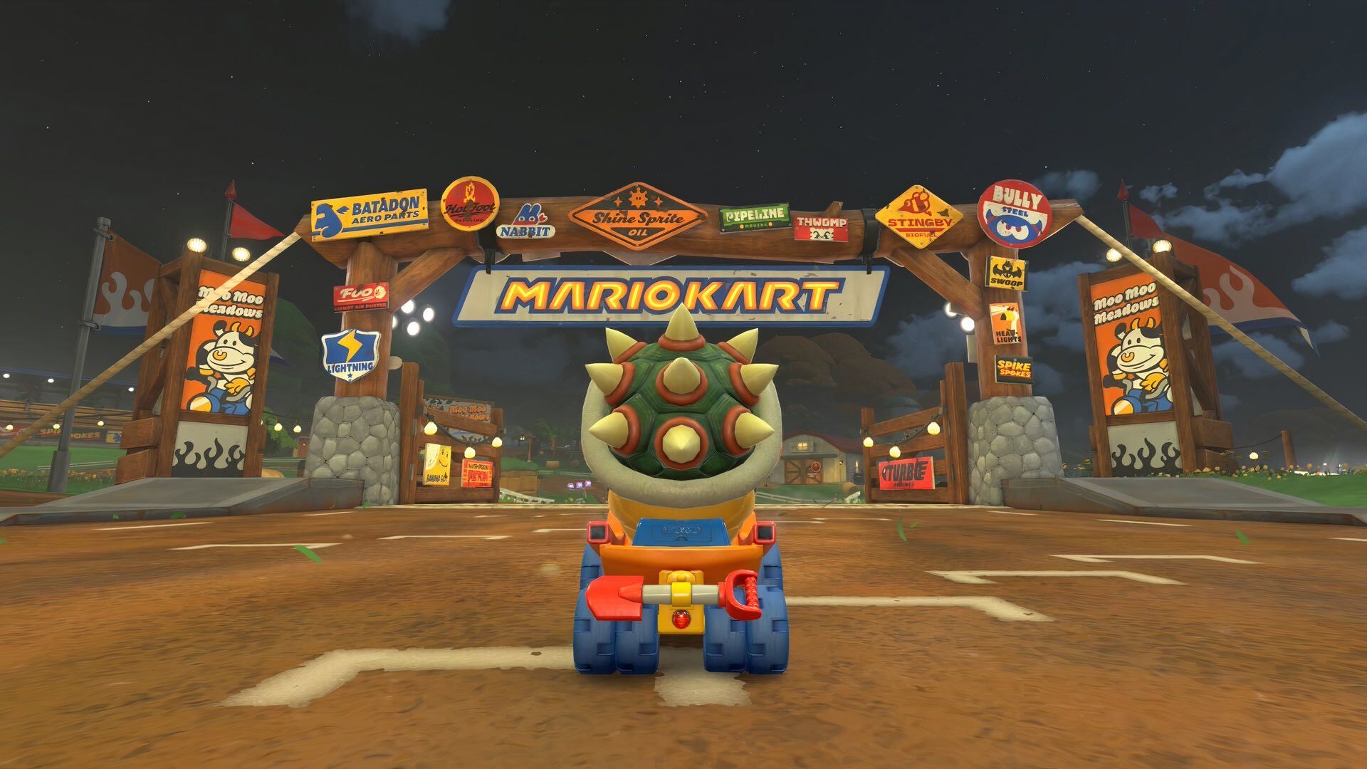 マリオカートワールドを初めて起動すると、マッシュルームの王国が即座に導入された悪夢に即座に紹介されます。マリオは、ロザリーナが所有するツアーバスを通り過ぎ、最初のコースに向かう途中で多数の看板とSを通過します。
