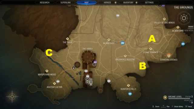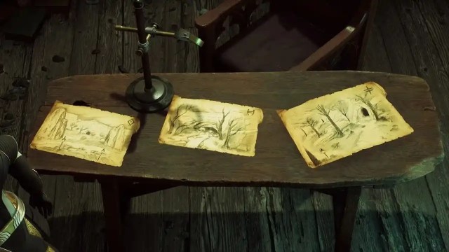 次に、教会内の部屋に戻ります(空白の羊皮紙)。公開力を使用します紙に図面があることを確認するために。アガサは、これらがセーラムのハイラム・ショーの恐怖の統治中に魔女が亡くなった場所であると述べています。これで、クエストアイテムをピックアップするには、これらの場所を見つける必要があります。これにはかなりの量の歩行時間がかかりますが、ミッションはどこにも行かないので、探索の間に戦闘休憩を取るようにしてください。