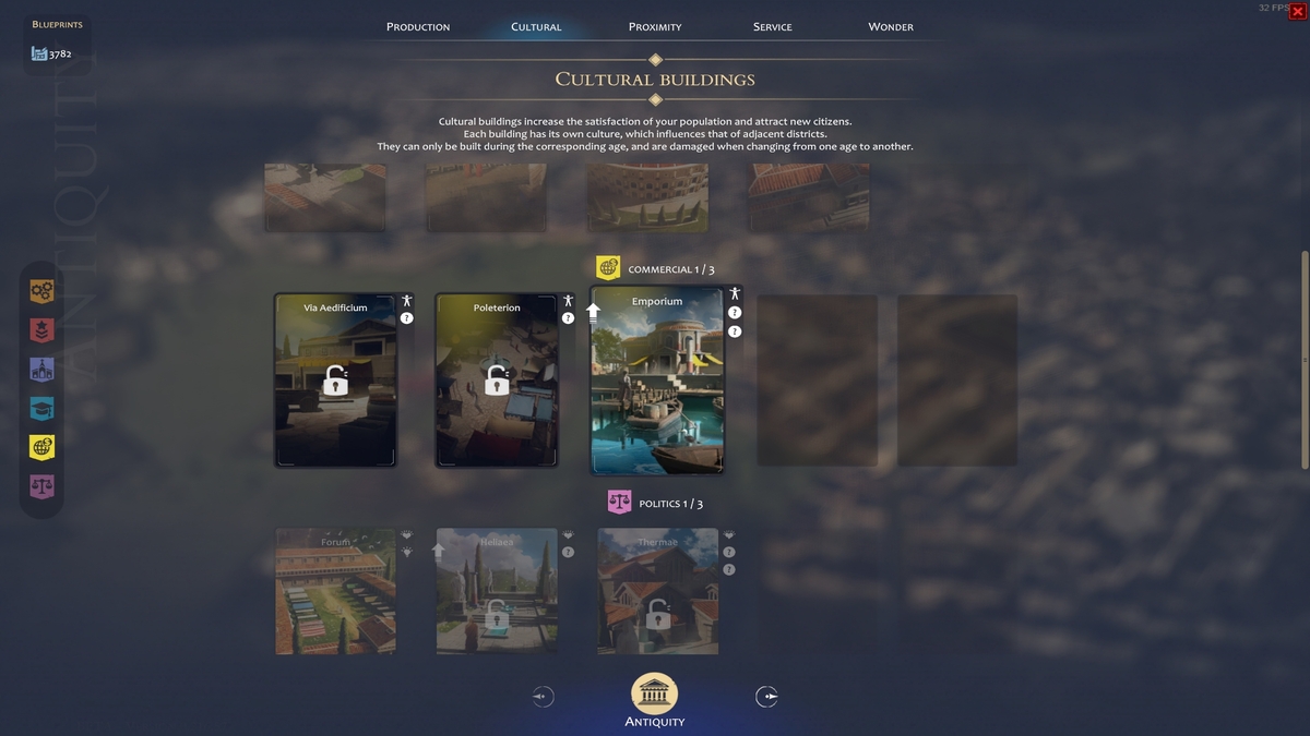 したがって、特にメモリポリスの早期アクセスにおける最高の文化は生産そしてコマーシャル文化。前者は、さまざまなパッシブブーストを適用することで資源の生産性を向上させ、後者は貿易ルートと受動的収入を与えることで市内でより多くの金貨を作るのに役立ちます。