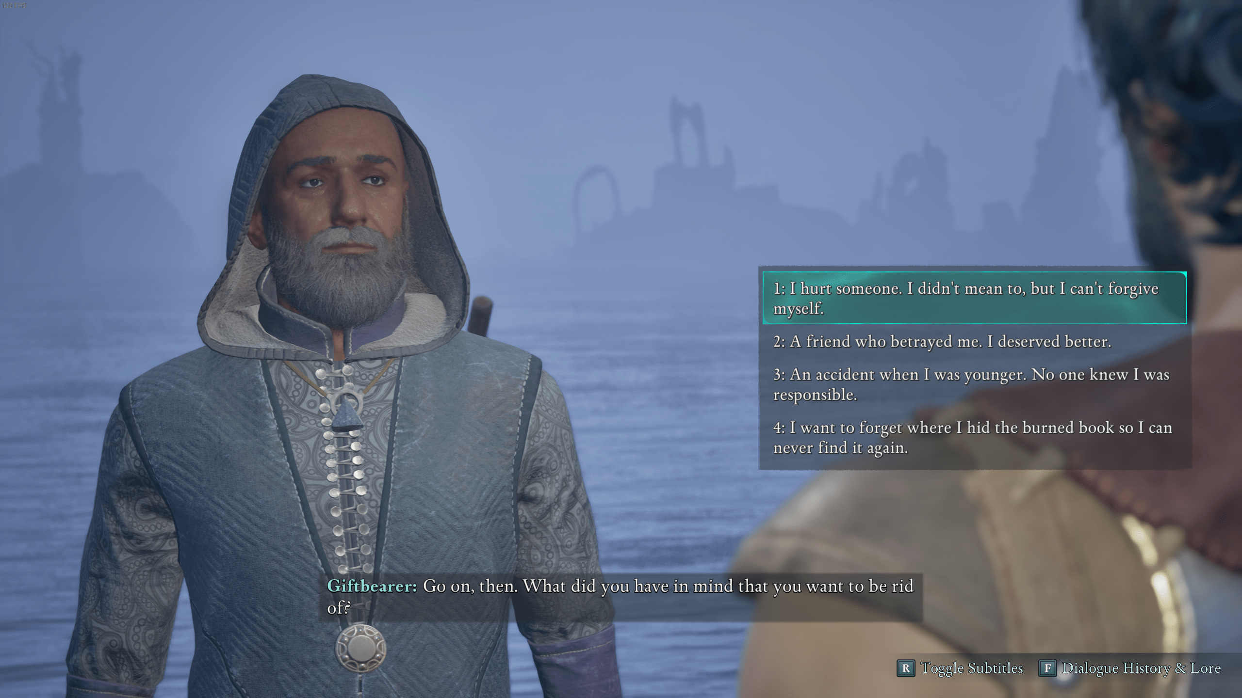 どの決定を下すかに関係なく、報酬は最終的に同じです。私はギフトベアラーに私の痛みを伴う記憶を消してから、met石をジョセプに戻すことにしました。ただし、met石をギフトベアラーに簡単に届けて、彼が航海するのを見ることができます。