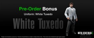 メタルギアソリッドデルタを予約注文するプレイヤー:スネークイーターには、白いタキシードのユニフォームが贈られます。これは、ゲーム内の進捗を通じてロック解除できる古典的な衣装です。