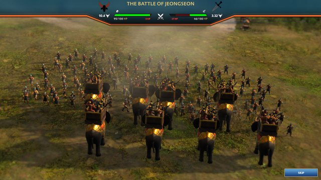 2つのライバルの力が同じ地域を占めるとき、彼らは戦いに参加します。特殊部隊(スカウトや入植者など)はそうすることができますが、どちらの部隊も戦いを開始したときに戦いから出ることはできません。ただし、軍隊はアクティブな戦いに移動できます。