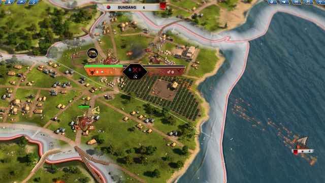 ターンを終えた後、軍隊が戦闘に入り、すでに戦闘を完了したことがわかります。あなたは両方の力のヘルスバーを見るでしょう彼らがどれほど痛いのか。フォース間の黒いアイコンをクリックして、バトルメニューを開くことができます。