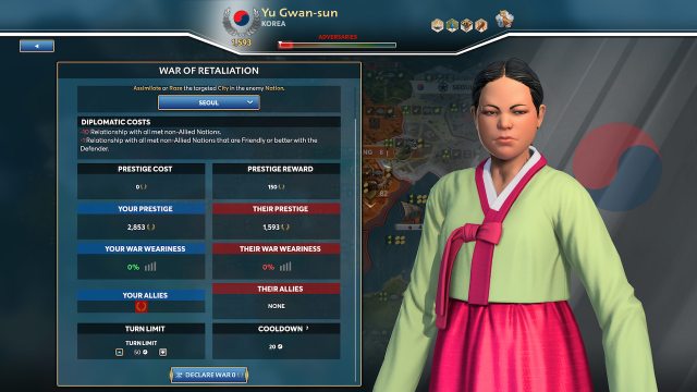 また、戦争が勃発すると、ターゲットネーションの都市を同化または破壊する自由があることを忘れないでください。ターゲットの都市をキャプチャするとき(ある場合)、戦争は終わります、そして、あなたはその国に対する戦争を再び少量の間宣言することができません。