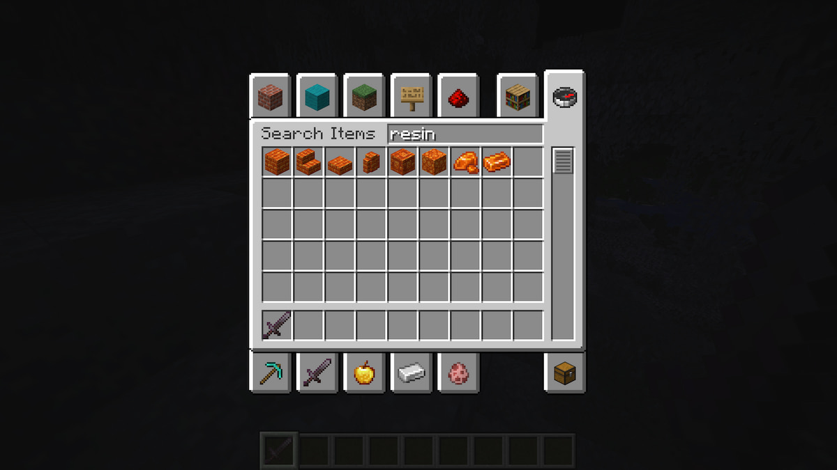 新しいブロックにある別のファミリは樹脂セットです。これは、樹脂の塊から構築できる光沢のある明るいオレンジ色のブロックセットです。これらのブロックは主に淡い庭のバイオームに見られますが、森林邸にも現れることもあります。