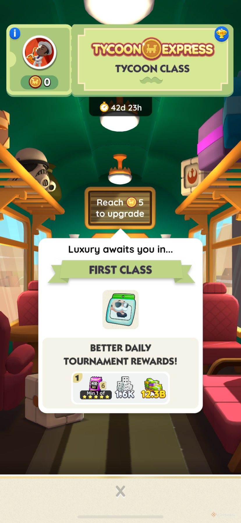 Tycoonクラスで合計5ポイントを獲得すると、ファーストクラスモノポリーのTycoon Expressについて毎日のリーダーボードでより良い賞品を獲得しますそこにとどまる期間中。 Tycoon Expressに上がるためだけに新しい絵文字を獲得することもできます!