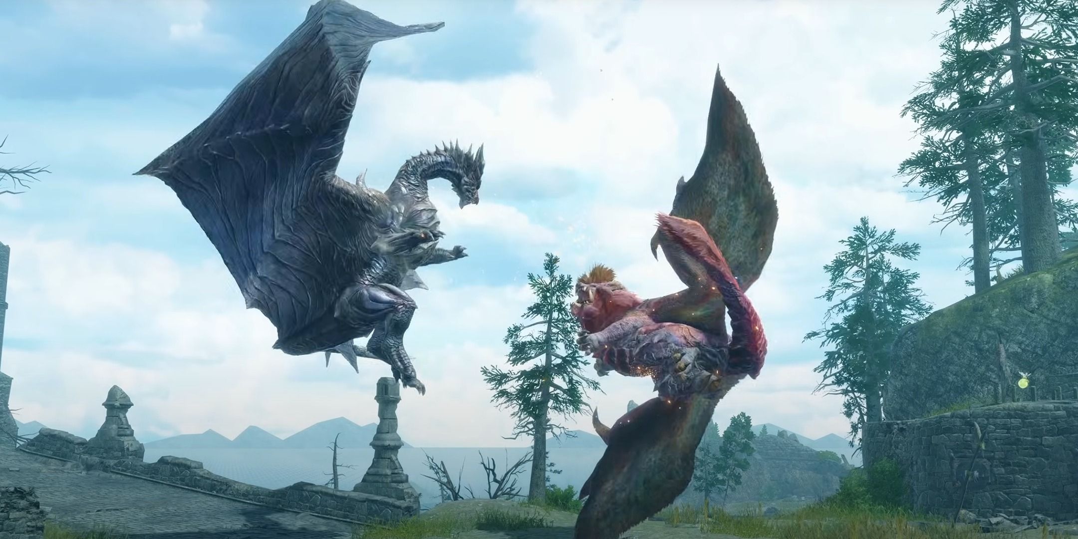 このライバル関係は、モンスターハンターの世界とモンスターハンターの上昇で展示されており、2人の長老ドラゴンがお互いに飛び回っており、彼らの空中戦は最終的にその1人を倒します。この芝戦争は、これらの2人のライバルと同様に構築されたモンスターであるVelkhanaと共有されています。