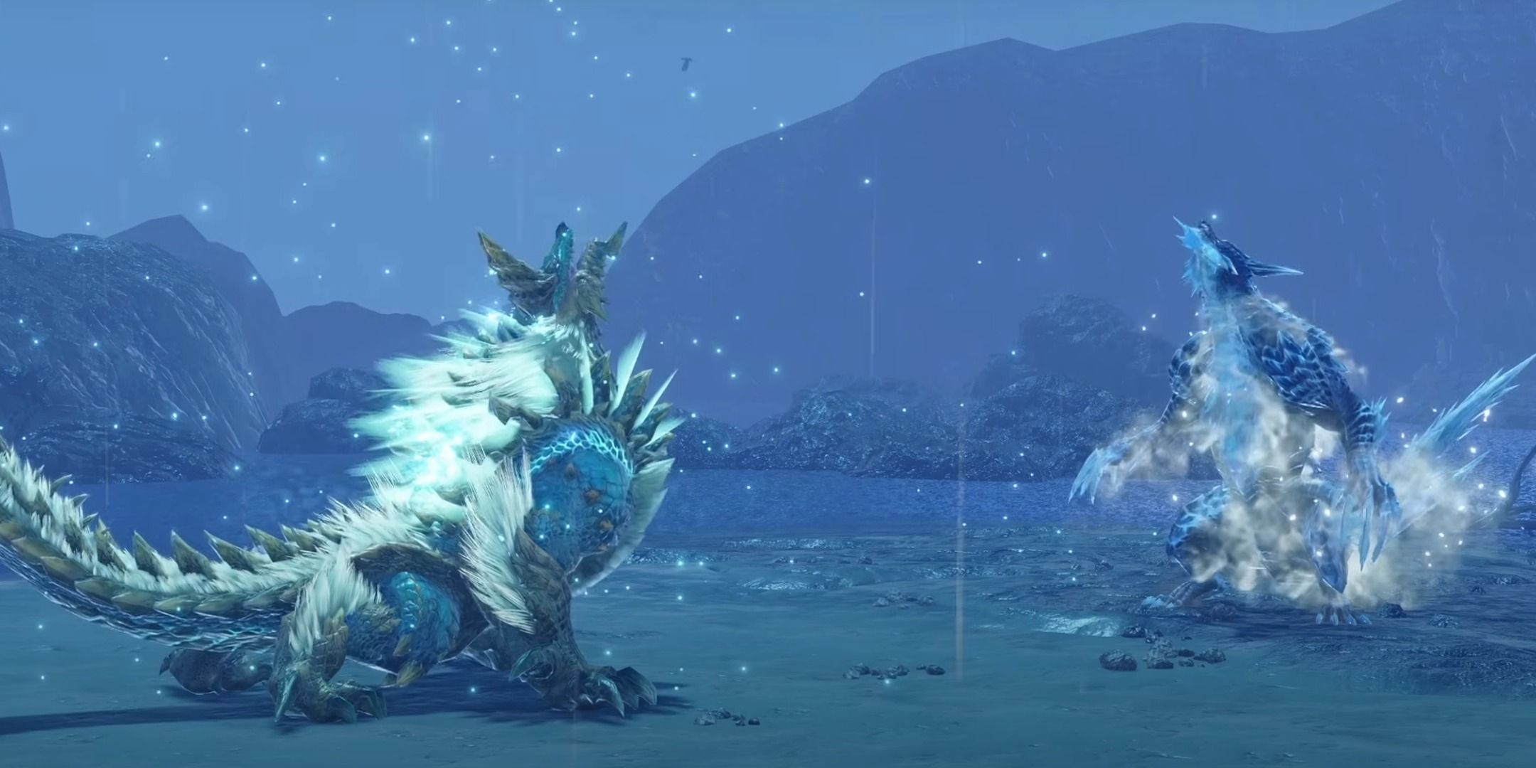 2つのモンスターの間の衝突は、短い争いから始まり、その後にパワーアップが続きます。 Zinogreにとっては、それはチャージされた雷の状態であり、ルナガロンにとっては二足歩行の氷の状態です。その後、彼らはお互いに衝突します。 Zinogreのトップヘビーは、LuagaronのBipedalバランスが地面へのライバルに格闘するまで、最初の利点を与えました。それは両端での緊密な戦いであり、どちらの方法でもモンスターのどちらかを応援したいと思うようになります。
