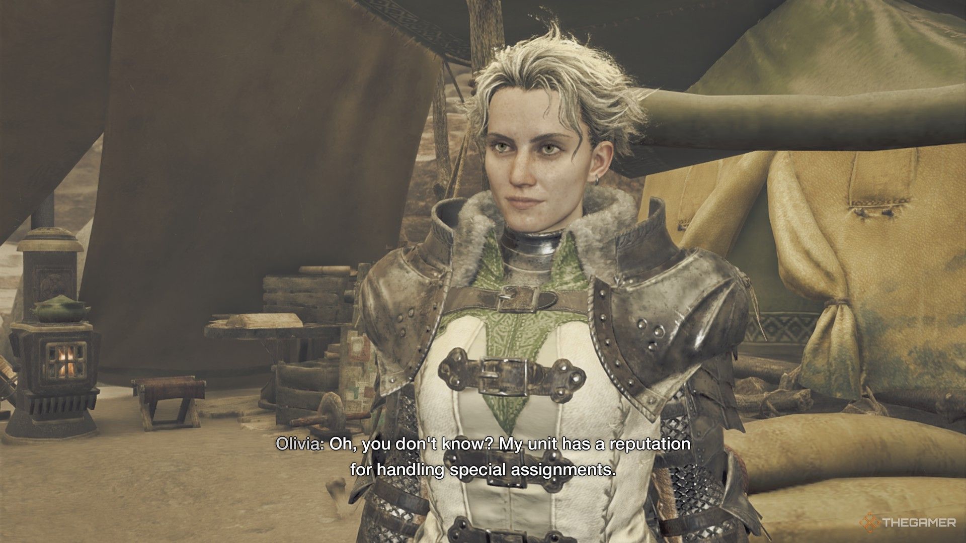 オリビアは、あなたよりも狩猟モンスターでさらに経験があり、多くの場合、有能であることを祝福します。彼女はまた、詩的な側面を持っており、ゲームの早い段階で人生の有限の性質を黙想しています。あなたのグループがオリビアに出会うたびに、彼女は事実上のリーダーになります。