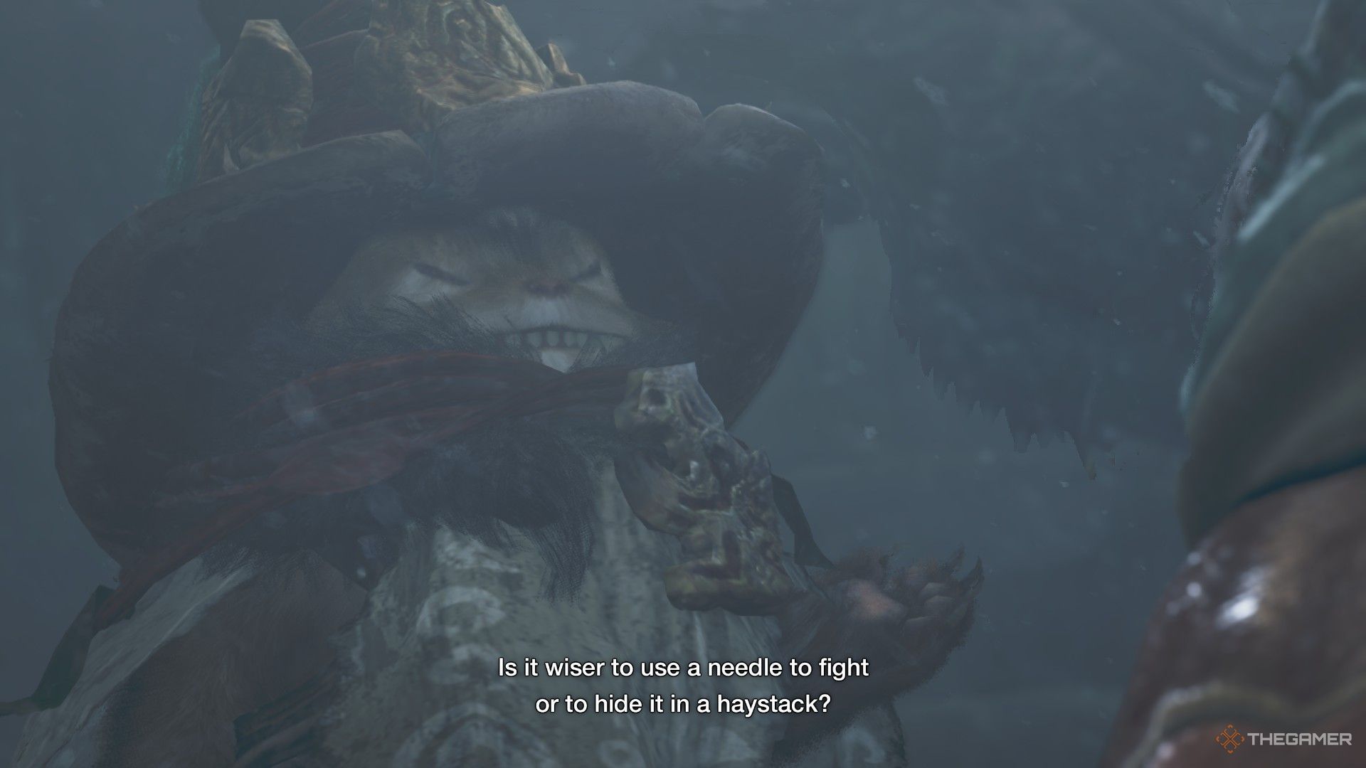 巨大なクモが食事のために彼を包み込んでいても、ローブは彼の人生の意味について詩的な詩的な詩的なままです。あなたの党が彼を救うとき、彼は同様にストイックなままです - 彼はそれほど多くの言葉であなたに感謝することはありませんが、彼はあなたを前の道で導きます。