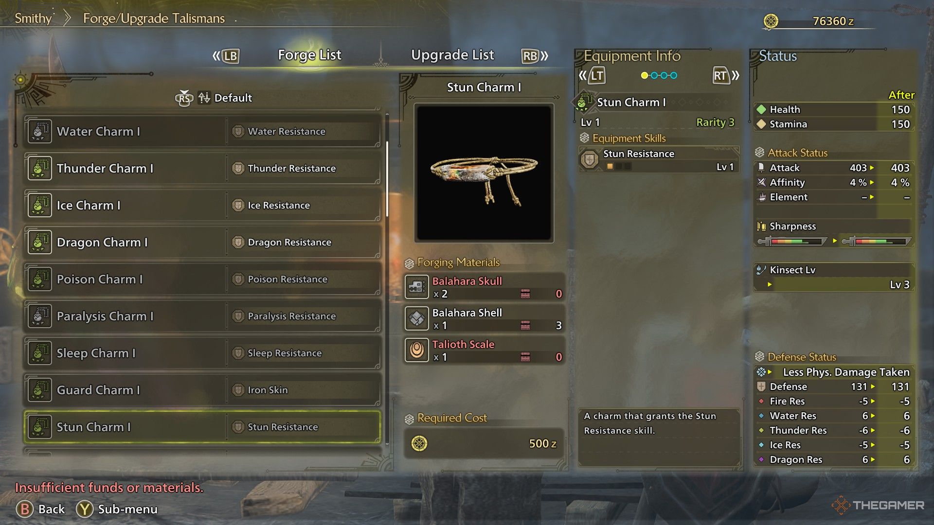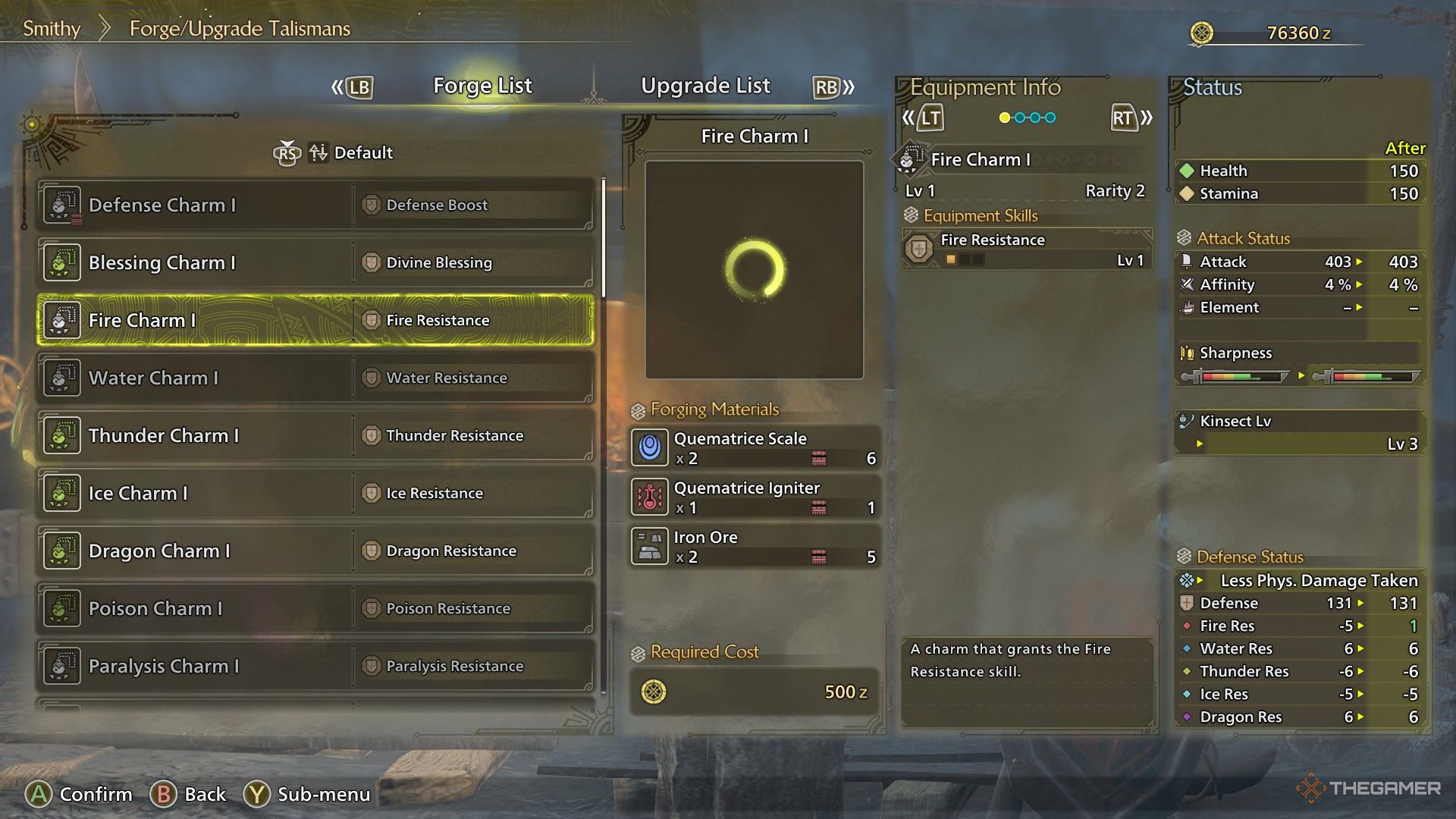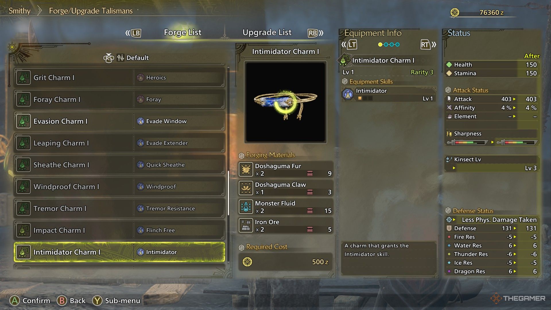 進むほど、モンスターハンターのワイルドは治療よりも予防についてより多くなります。防御魅力を作るために急いでいるのではなく、下にスクロールしてガードチャームを選ぶことをお勧めします。鎧のセットは、基本防御に十分すぎるほどです。ステータス効果の防止は、長期的にははるかに重要です。