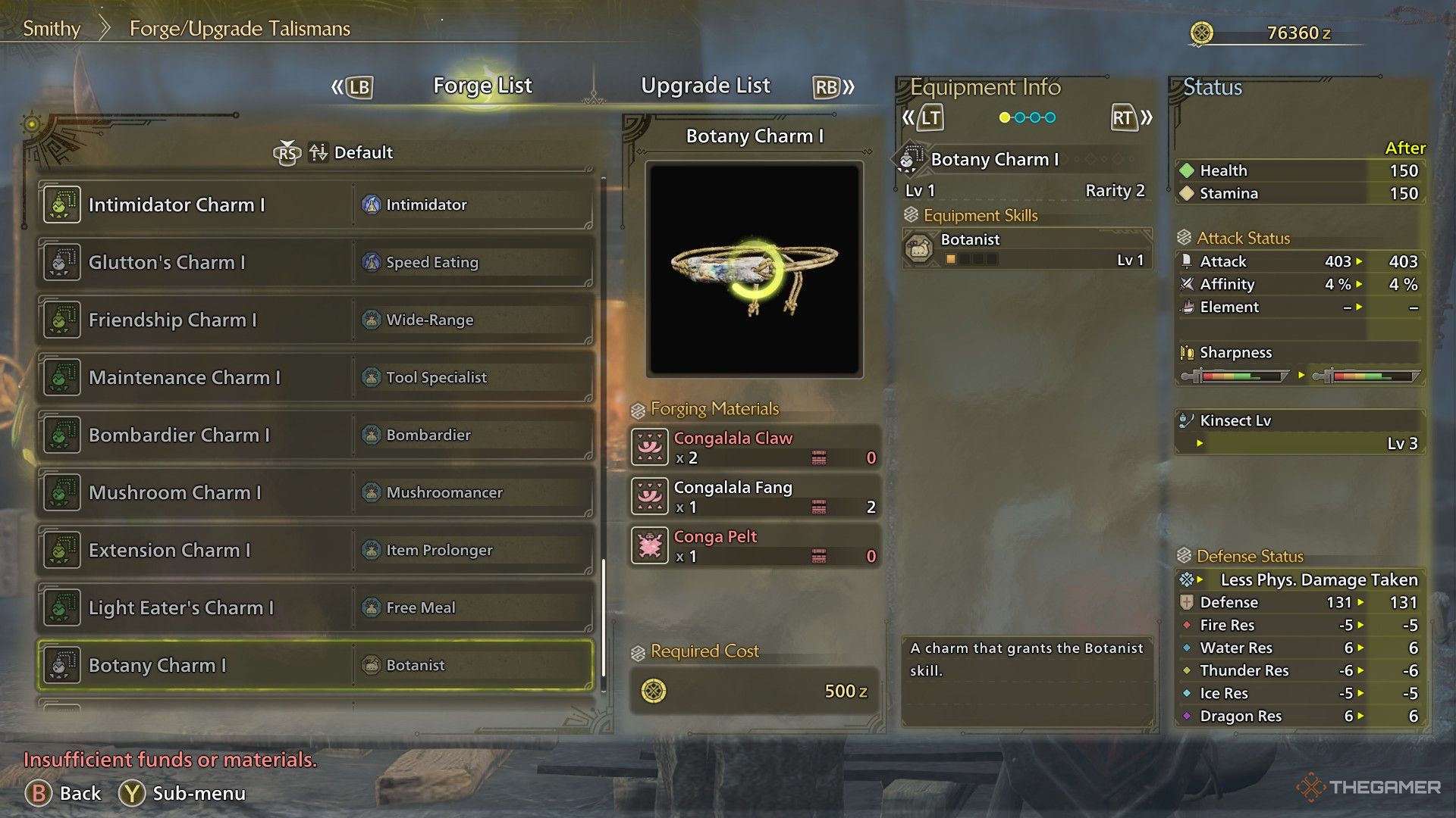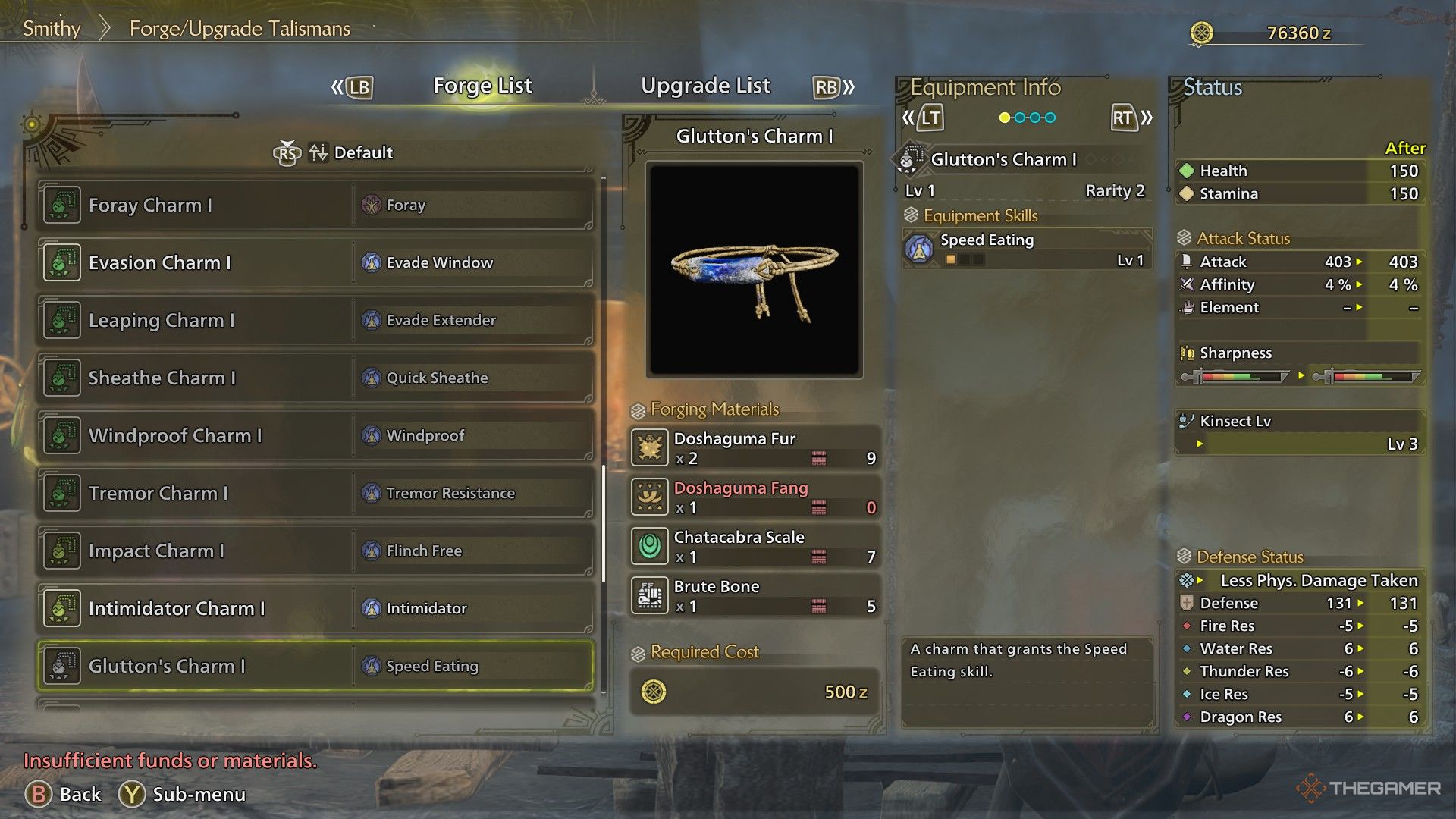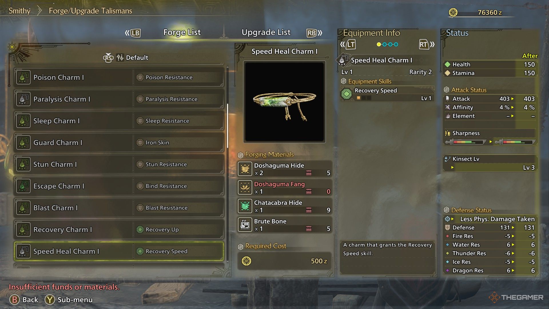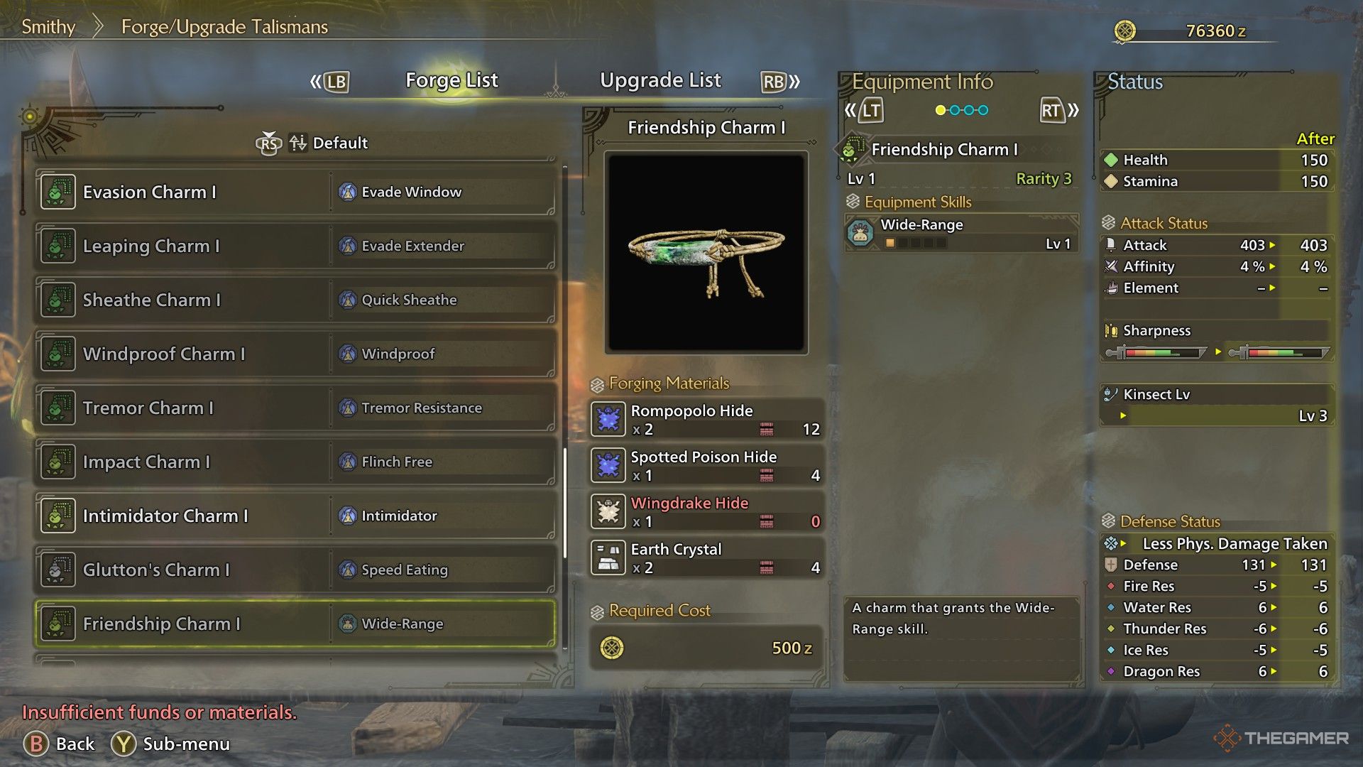進むほど、モンスターハンターのワイルドは治療よりも予防についてより多くなります。防御魅力を作るために急いでいるのではなく、下にスクロールしてガードチャームを選ぶことをお勧めします。鎧のセットは、基本防御に十分すぎるほどです。ステータス効果の防止は、長期的にははるかに重要です。