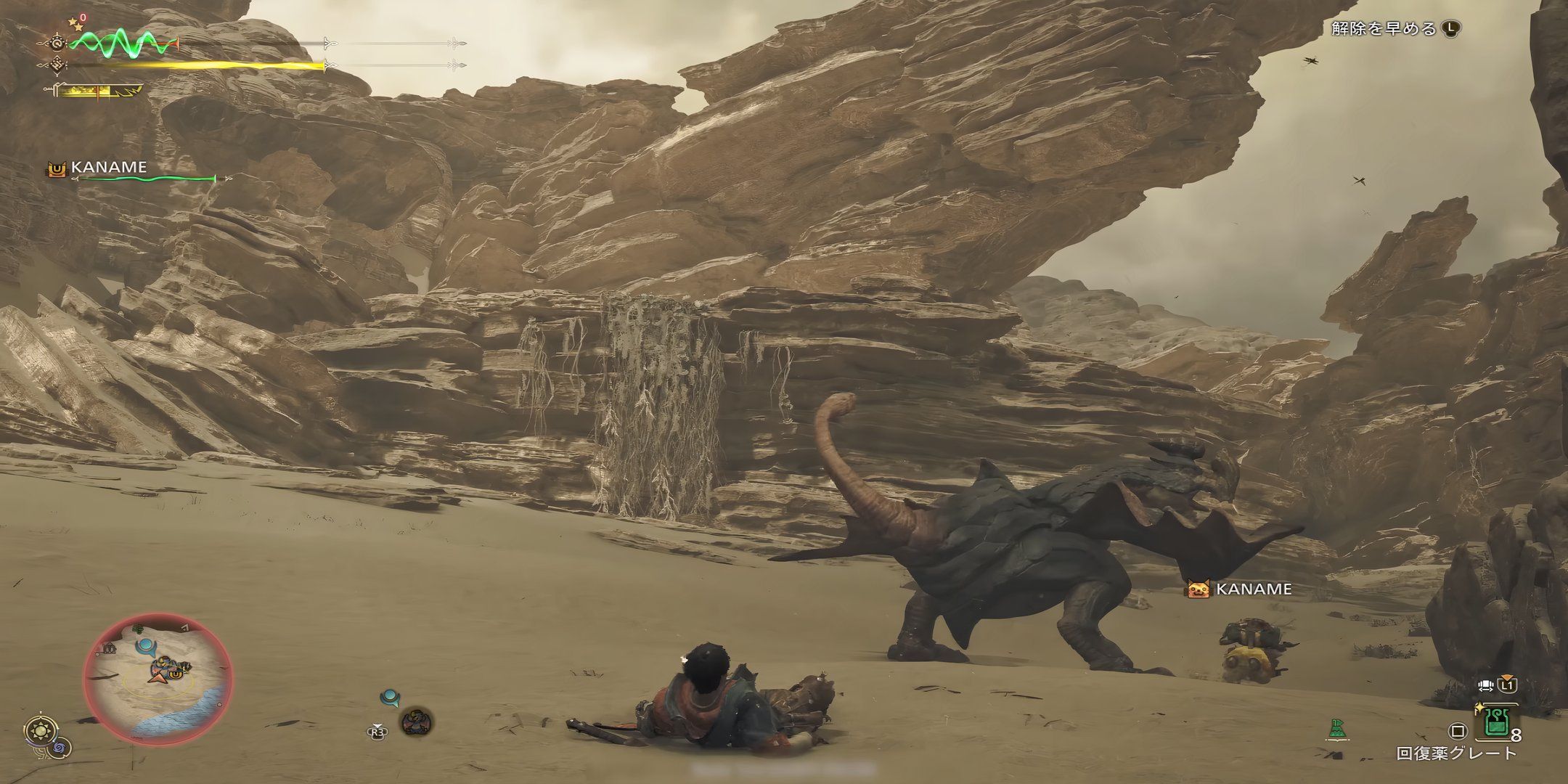 Gypcerosは頭の頂上を使用して、一時的にあなたを気絶させる盲目のフラッシュを作成します。それは通常、ボディスラムまたはその尾の重い攻撃でこれに続きます。左スティックをすばやく振ると、より速く回復できますが、フラッシュを完全に避ける方が良いでしょう。残念ながら、フラッシュを否定することはできません。。 un然とするのを避けるために、その範囲の外に出るか、何かの後ろに隠れる必要があります。