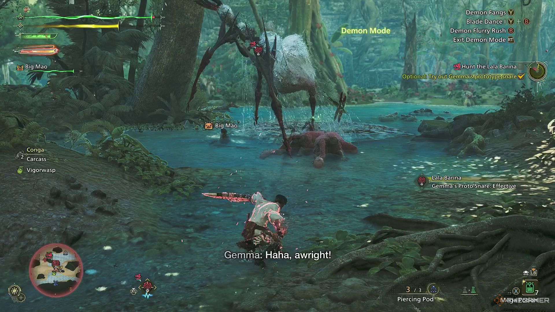 海岸が澄んでいて、それがあなたとララ・バリーナだけになったら、あなたはモンスターをジェマの場所に誘うことができ、そして彼女はララ・バリーナをしばらく所定の位置に保持するトラップを解き放ちます。その後、ジェマはもはや戦いに参加しません。 あなたは自分でララ・バリーナを倒さなければなりません。