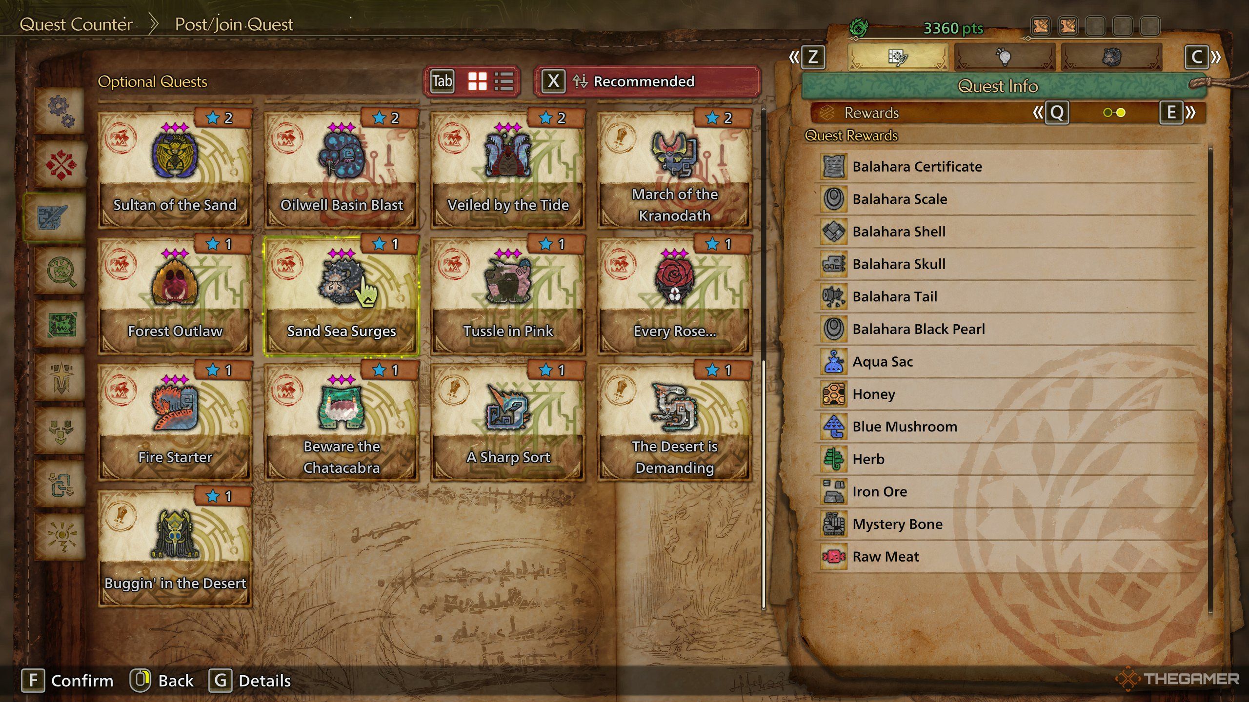 2人のモンスターの間、バラハラを農業することをお勧めします1つ星のクエストでは、砂の海の急増。いくつかの理由がありますが、主なものはそれです。 アーリーゲームクエスト、あなたがそれと戦うために使用するギア すぐにアウトクラスその攻撃と防御。