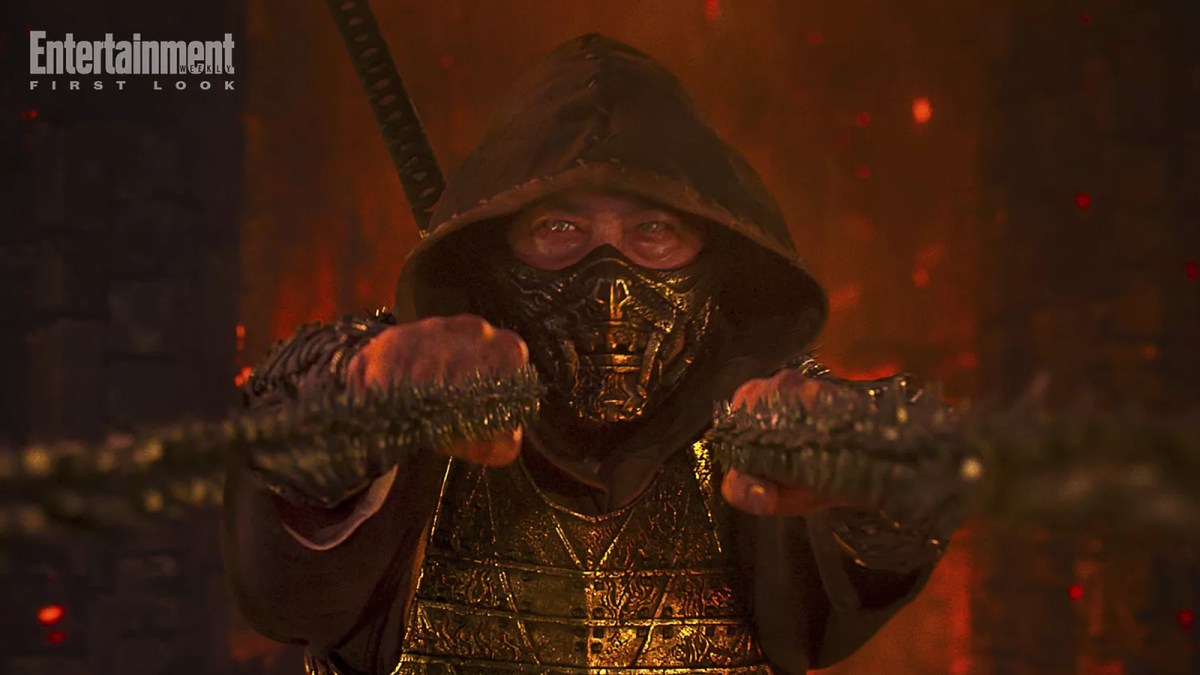 発行エンターテインメントウィークリー、合計で4つのMortal Kombat 2スニークピーク静止画があります。最初の特徴は、カール・アーバンとしてケージとして、ソーニャ・ブレード(ジェシカ・マクナミー)、ジャクソン・「ジャックス」・ブリッグス(メカド・ブルックス)、リュー・カン(ルディ・リン)と並んでいます。 2番目の展示では、キタナ(アデリーヌルドルフ)が彼女の署名レイザーシャープファンを振り回し、3番目はシャオカーン(マーティンフォード)の象徴的なスカルフェイスヘルメットのクローズアップを提供します。最後に、EWの最初の外観の画像の4番目は、サナダのHanzo Hasashi/Scorpionの復活をからかい、Netherrealmのように見えるものに設定されています。
