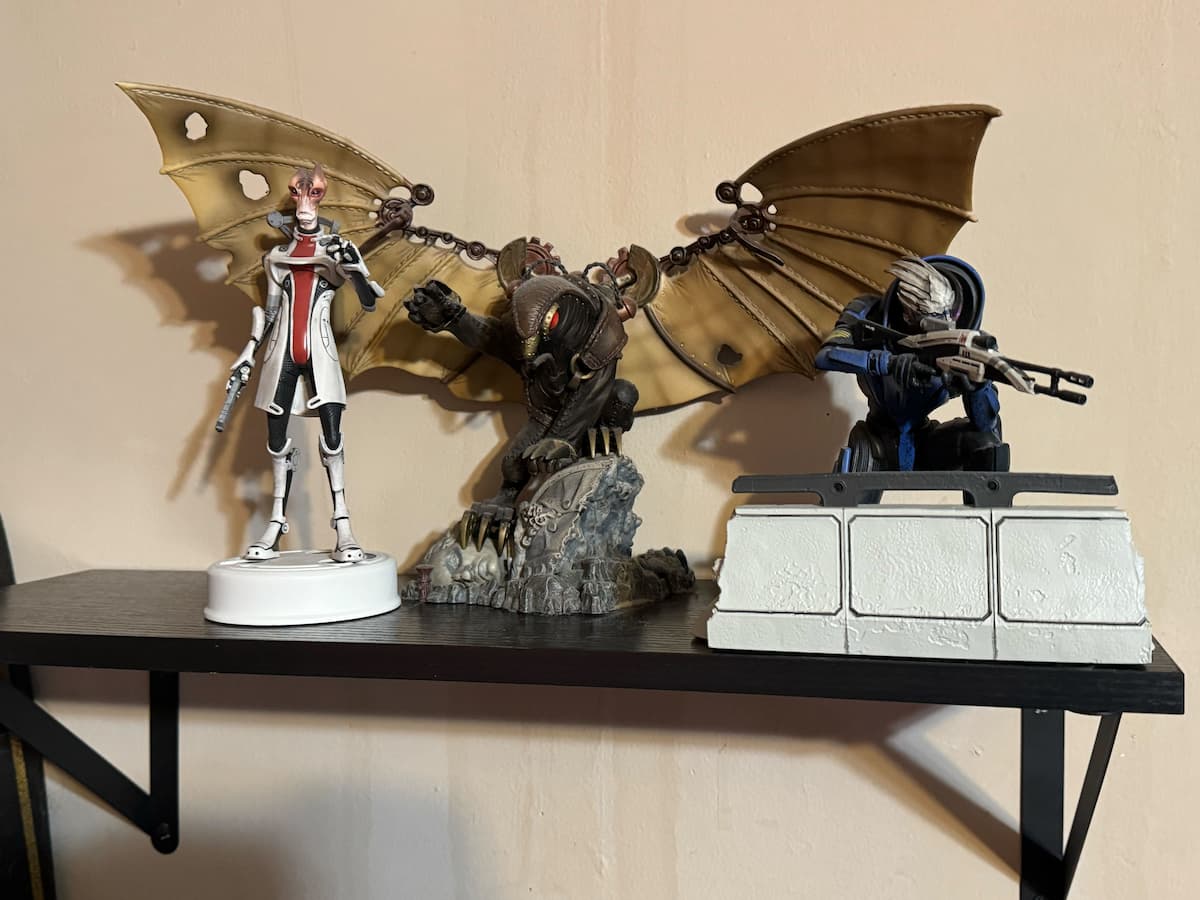 サイドへのこのもう1つの棚には、Mass EffectのGarrusとMordin(「貝殻でテストを実行するのが大好きだった」)と、私に大きな影響を与えた2つのフランチャイズのBioshock InfiniteのSongbirdを特徴としています。しかし、壁の上のスペースは空で、何か新しいものの機会に満ちています。または多分何か年齢。