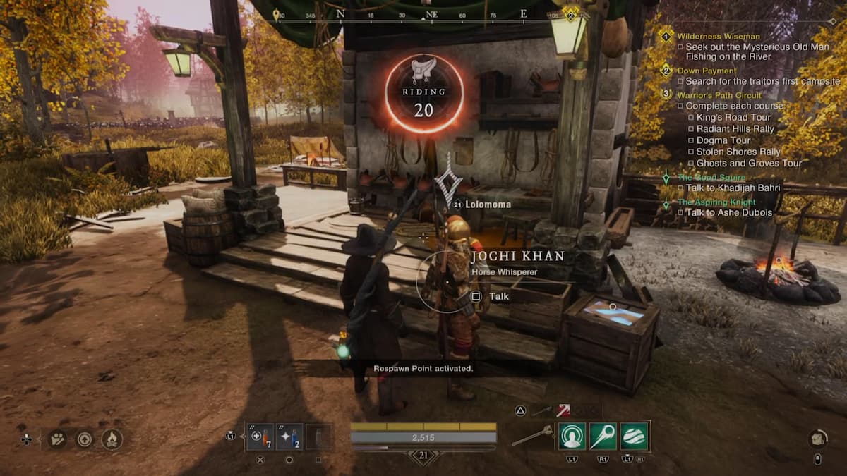 - Jochi's Stable Innでチェックインすると、すでに到達しているでしょうレベル20ライディングスキル。