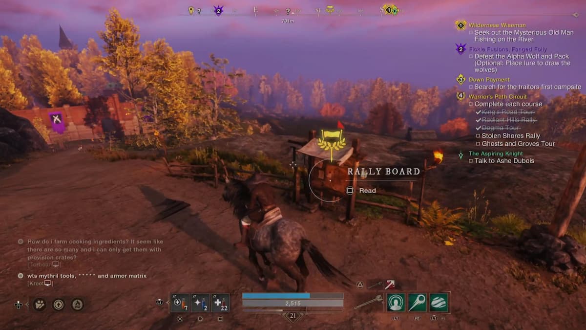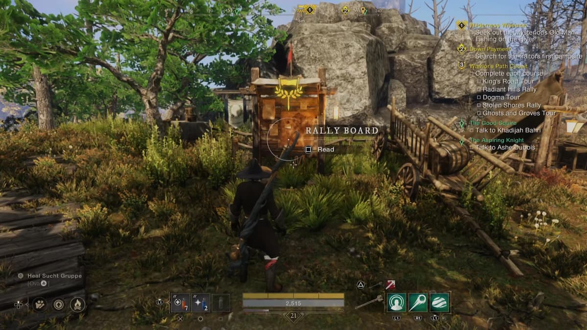 これは、ヨチカーンの安定した宿に最も近い集会です。 Jochi KhanのStable Innから抜け出すと、左折して道を進みます。マーカーがポップアップし、ラリーボードに導きます。ラリーボードを読んで、マウントクエストを受け入れます。輝く丘の集会。