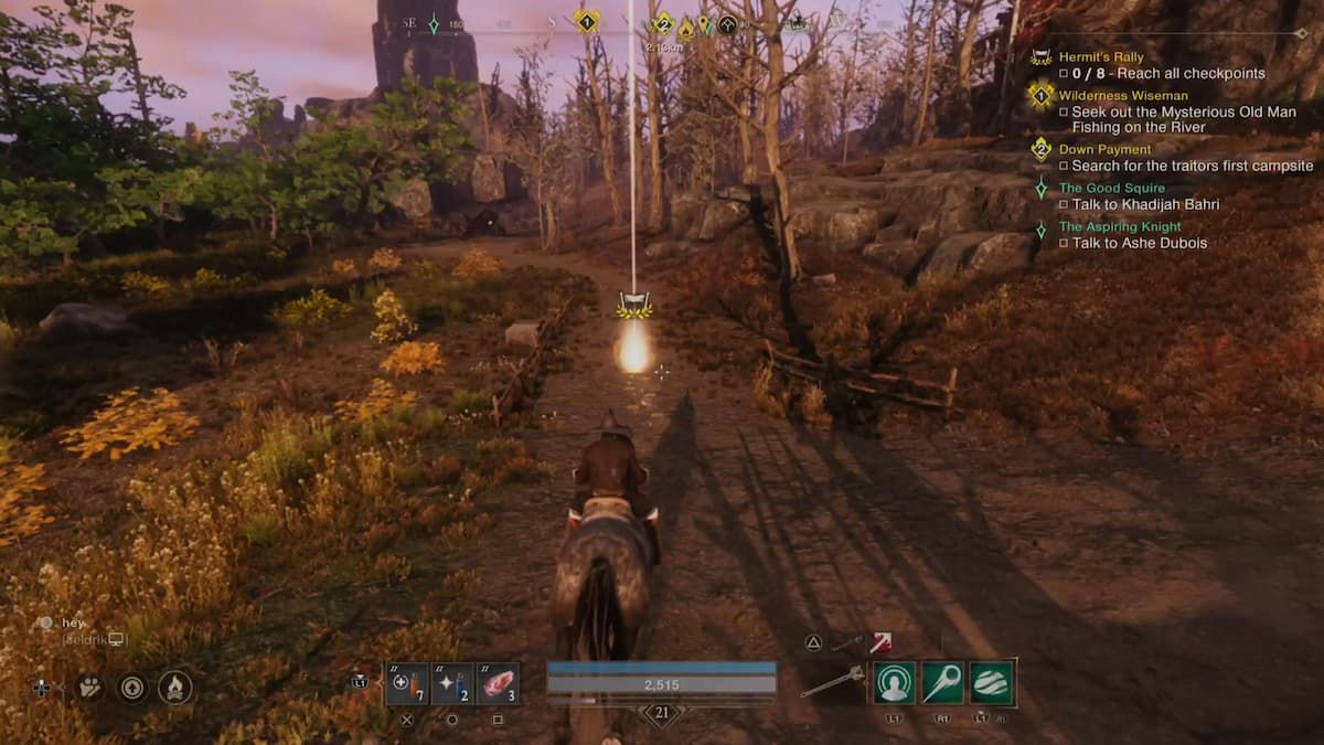 クエストを完了すると、名前の馬が届きますムーンシャドウ報酬として、マウントを召喚して乗る能力を解き放ちます。その後、ジョチ・カーンは別のクエストを提案します。ハーミットの集会「。これは、マウントを召喚して乗ることに慣れさせるための練習レースです。